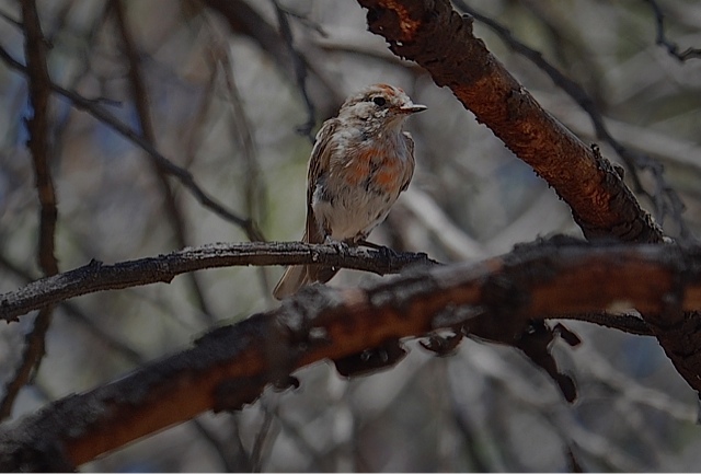 And quickly we came across a very co-operative Shining Bronze Cuckoo, and then a small family party of Red-capped Robins, a female, two juveniles, and a pair of older juveniles moulting into adult plumage. One of which is no doubt a male. He was very attentive to the female, feeding her several times in the 30 minutes or so I was watching. But trying to get near for a photo was not going to work. I’ve said before, when you chase them at 5m, they will fly 10m. Then when you’ve halved the distance, they fly another 10. Now the base is 15m and they are tiny little blobs in the viewfinder. But. I was in a hurry and gave it my best shot anyway. He is quite skittish and I must go back and settle down and see what happens.