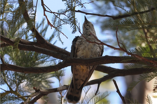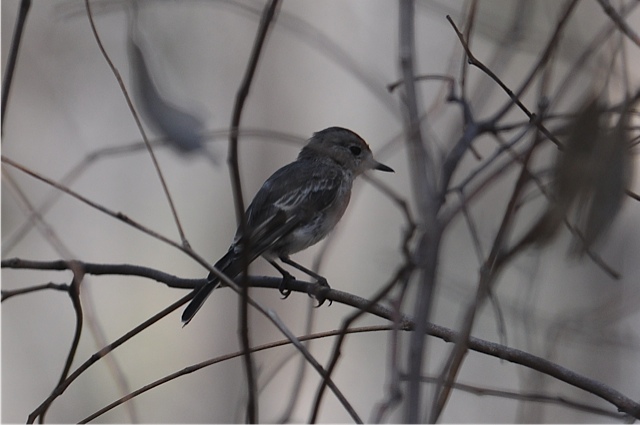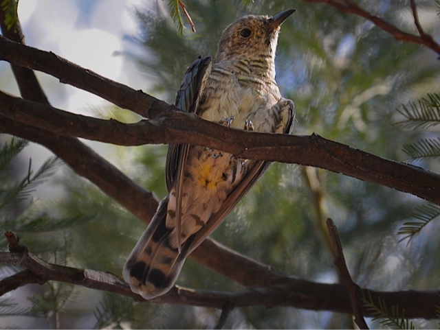 And quickly we came across a very co-operative Shining Bronze Cuckoo, and then a small family party of Red-capped Robins, a female, two juveniles, and a pair of older juveniles moulting into adult plumage. One of which is no doubt a male. He was very attentive to the female, feeding her several times in the 30 minutes or so I was watching. But trying to get near for a photo was not going to work. I’ve said before, when you chase them at 5m, they will fly 10m. Then when you’ve halved the distance, they fly another 10. Now the base is 15m and they are tiny little blobs in the viewfinder. But. I was in a hurry and gave it my best shot anyway. He is quite skittish and I must go back and settle down and see what happens.