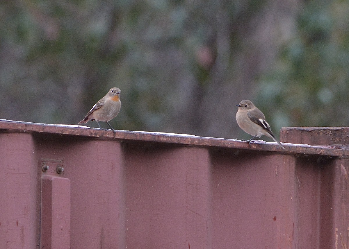 It began to rain, and after much dodging of showers we decided home was a good place, and set out. Just as we got through the gate, on the opposite side of the road, the cemetery work crews have their gear locked in a 20foot Container. To both our surprises there was a family group of Flame Robins on top. Male, female, and 5 juveniles. They were enjoying the water on the top of the container. The rain must have filled up some of the corrugations on top of the container, and even though it was raining they seemed to enjoy the bath. Best 15 minutes we’d spent all day, as they hopped about, chattered, bathed and queued up for their turns. Nice way to stand about in the rain I think.