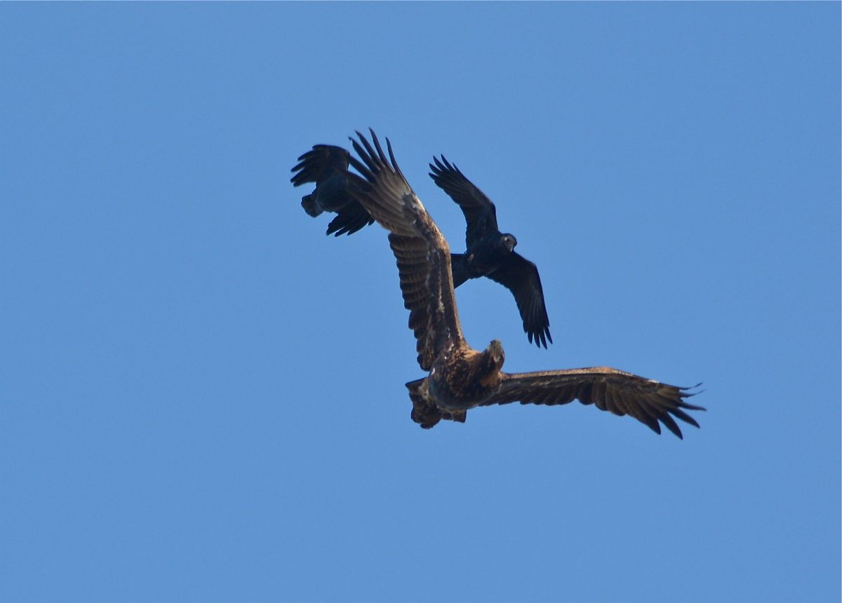 A Wedge-tailed Eagle was harassed by some Ravens, and then not satisfied they turned their collective attentions to a Whistling Kite, for good measure.