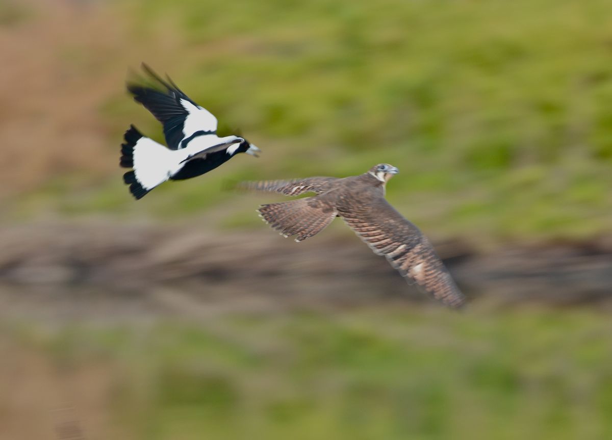 On toward Borrow an stopping at 15W outflow, I found a Pied Cormorant being fed by its parent. And then we spotted a Brown Flacon who seemed to have a complete dislike for Whistling Kites. And then to have a Brown Falcon being put off by a Magpie.