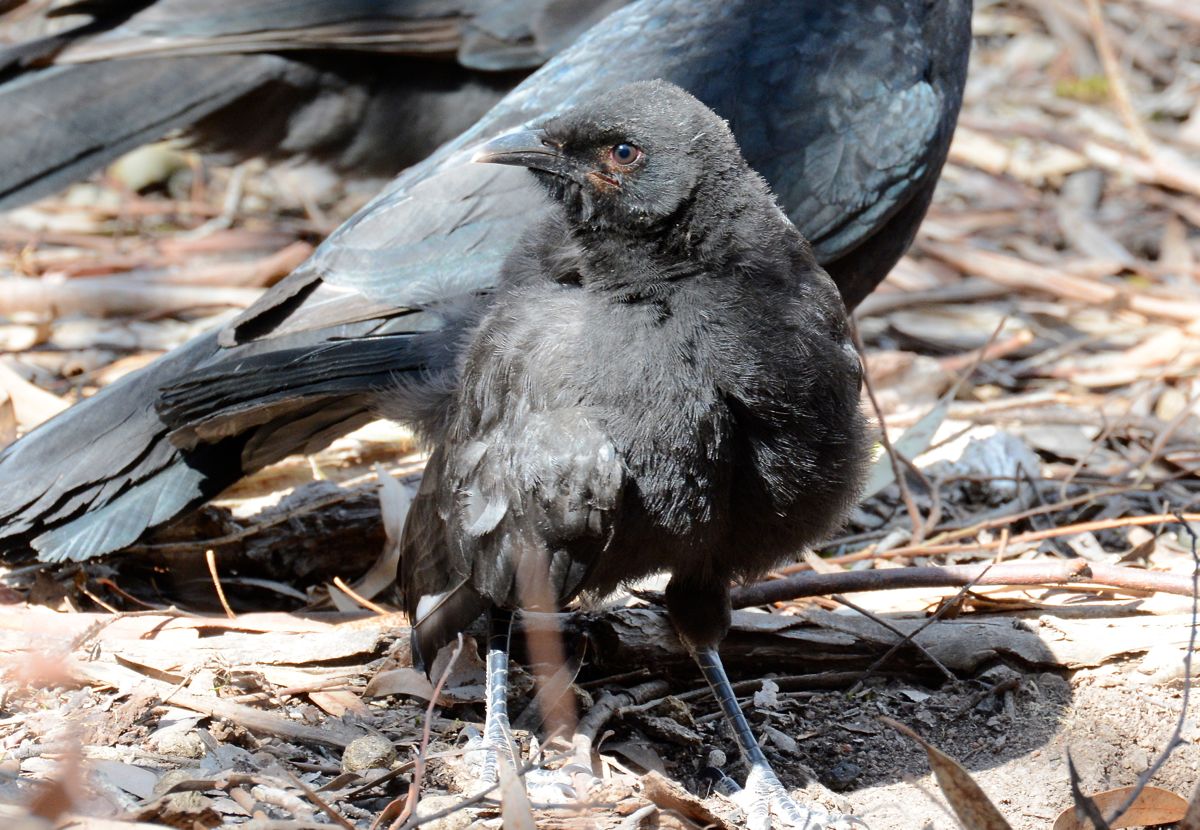 Just crossing over from one track to another we came across, first one group of White-winged Choughs, and then a second smaller family of perhaps 7 or or so birds. Both groups had several young and I walked back to enjoy a few moments with the larger group, and discovered their young were two recent fledglings, because they still have lots of down on their heads and backs, and one older juvenile.