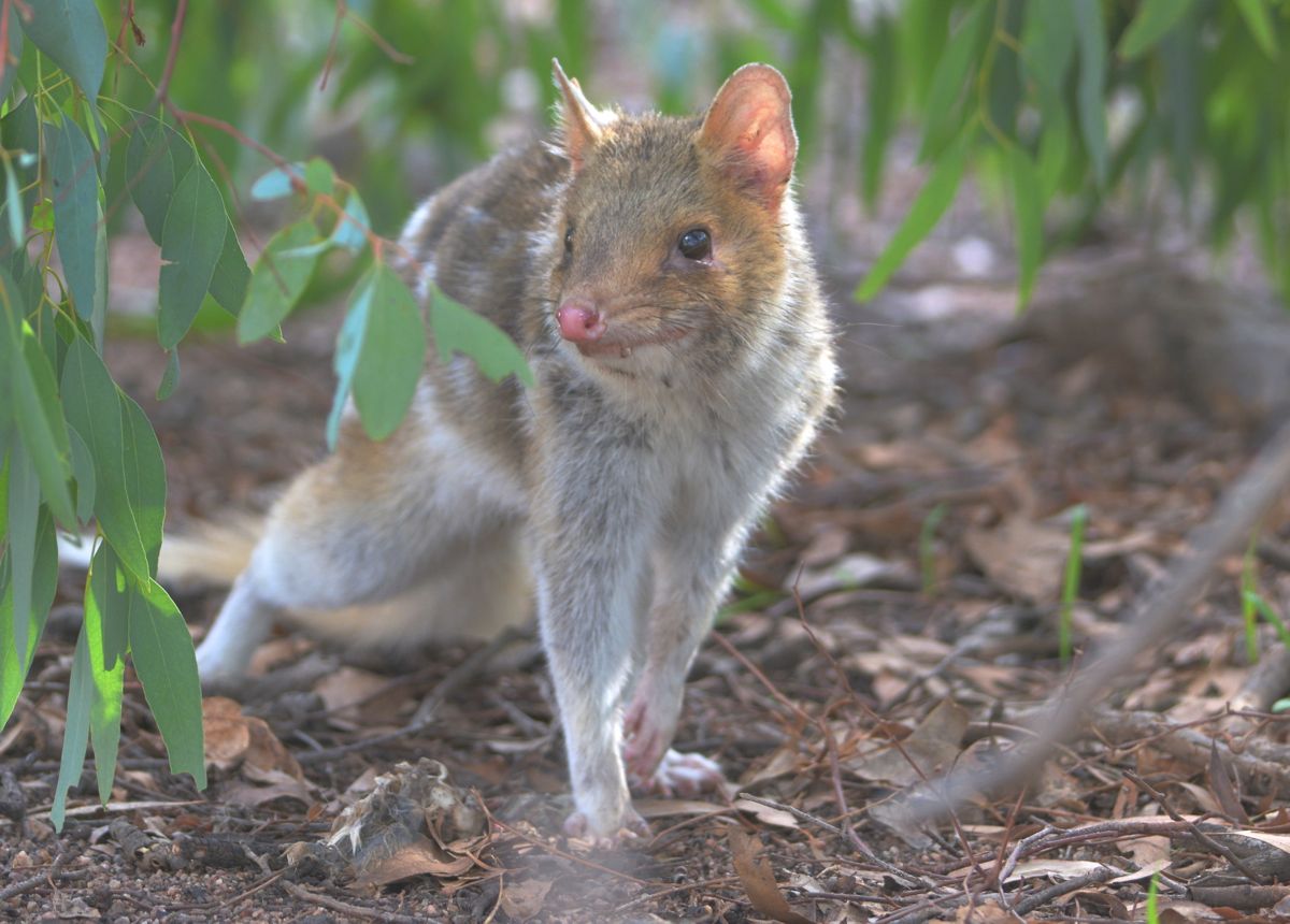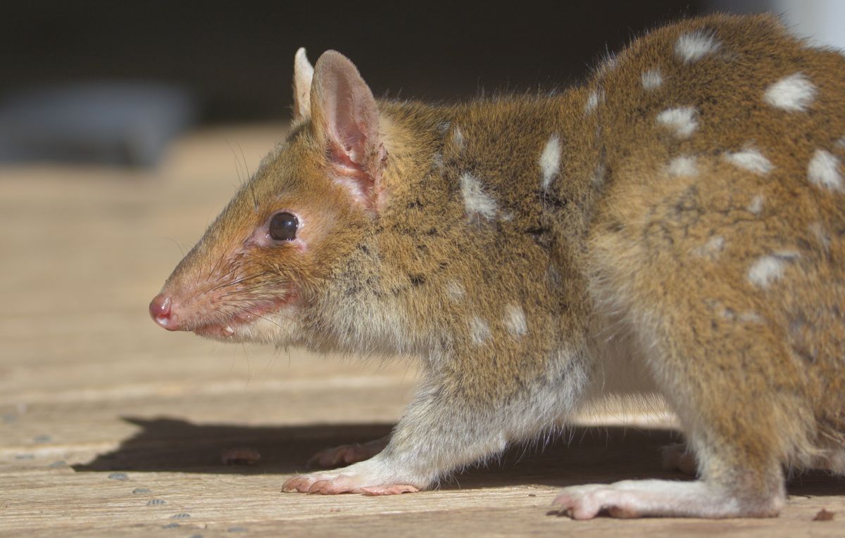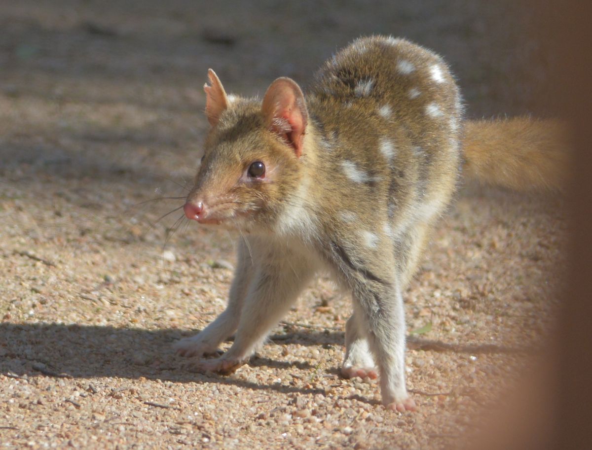 We stopped for lunch at the worksite kitchen area and one of the local inhabitants, an Eastern Quoll came out to see what has going on in “his patch”.  These delightful little creatures once roamed the grasslands of Victoria and were so plentiful that the government placed a bounty on them at one time.  Sadly there is only a handful of them left, and by 1970 or so they were considered ‘extinct’ in Victoria.
