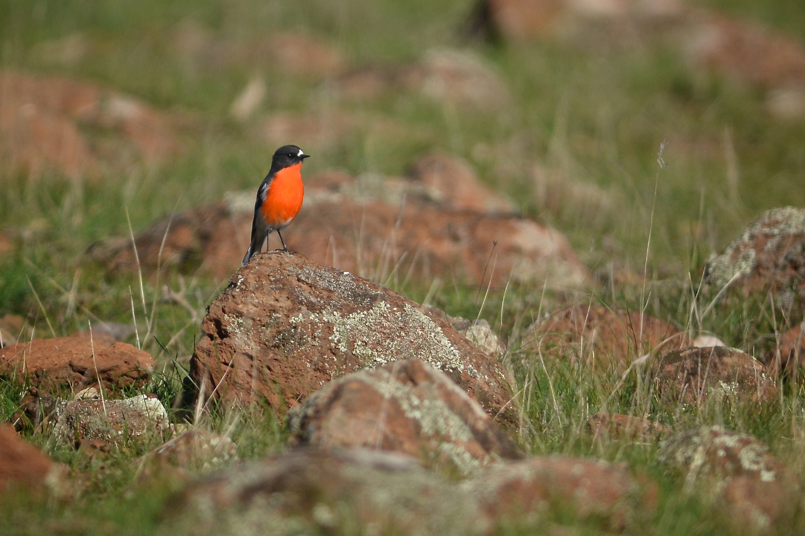 We eventually found a small family of Flame Robins, and set down to work. There is something very satisfying about sitting quietly while a dozen or more birds feed back and forth around you. These birds have the name “Petroica” which roughly translated means “Rock dwellers” and where they were working was indeed the rocky side of a slope. So we sat in the sunshine and enjoyed the activity. None seemed to really be too sure of us, but at least they allowed some good, if not great shots. But like all good days out, it was both enjoyable and a learning experience. Armed with our new knowledge of the feeding area of these birds will give us a head start next time we are out that way. And of course, with such great little subjects its going to be sooner than later.