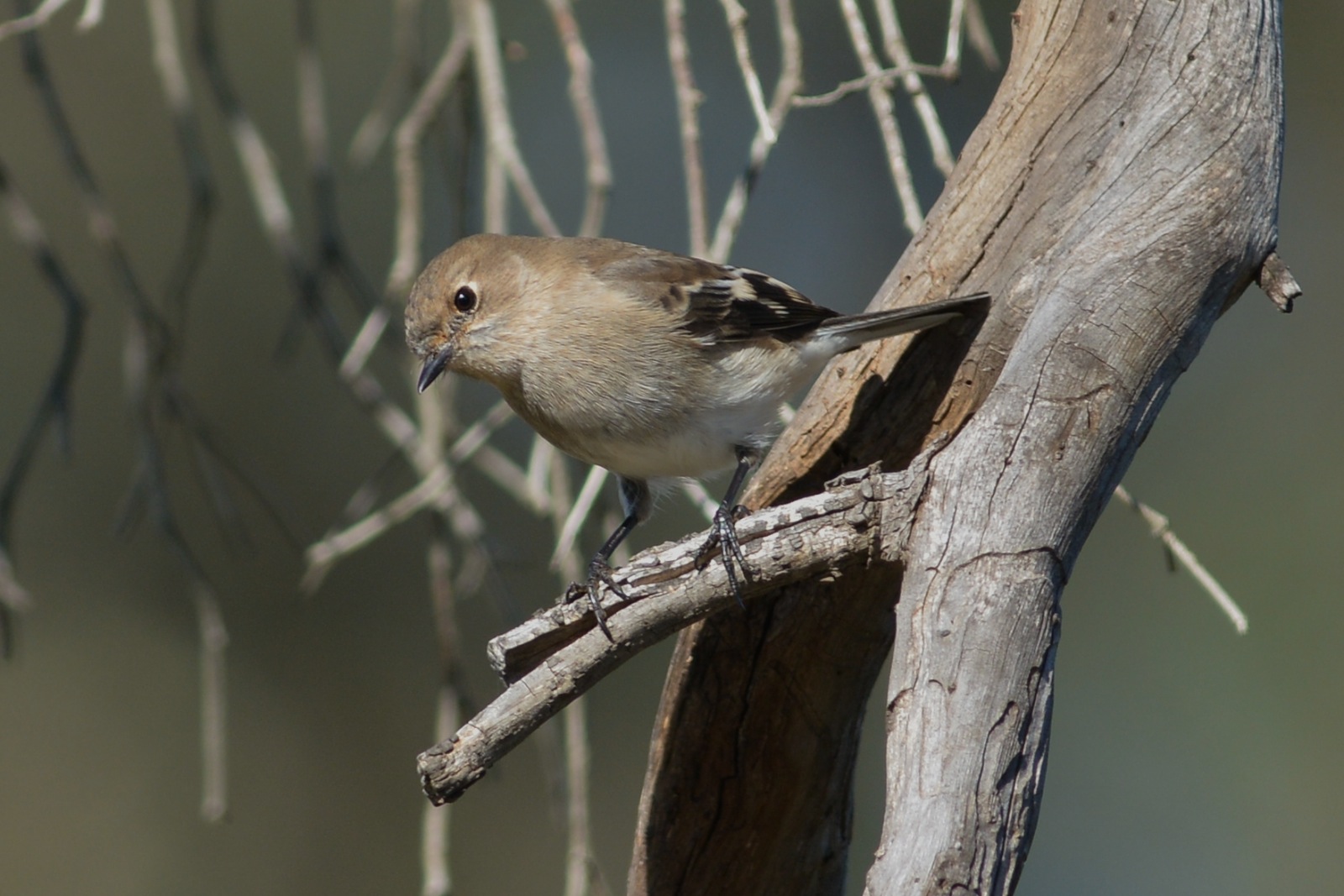 Our friends, Richard and Gwen A (he of Woodlands Birds List fame) wanted to have lunch at Eynesbury Golf Club and a bit of a walk in the forest. Again this should be a good area for Flame Robins, so we accepted the offer, and waited for a ‘reasonable day’. It arrived. Beaut cold morning. 2 degrees, plenty of sunshine and little breeze. Great. So we, EE, Mr An Onymous, and I set off early to get a good start and work up an appetite for lunch. We had previously found several robins in an area within pretty easy walking distance of the carpark and so we decided to start there. Brown Treecreepers, a few Dusky Woodswallows, a White-winged Triller and an assortment of Thornbills were enjoying the change in the weather too.