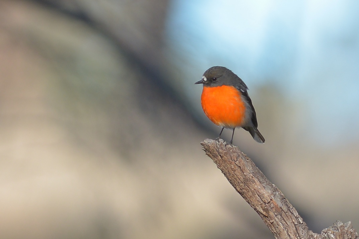 Once inside the gate, it didn’t take too long for three pairs of eyes, (on second thoughts, make that four pairs of eyes, as EE was with us), to locate a pair of very active, but somewhat suspicious of human activity Red-capped Robins. They were in an area that had not had a pair of birds for at least two seasons, so I figured them to be a new couple. I’m beginning to contemplate that the birds I first saw all those years ago have reached their use by date and that its only now that a new younger generation of birds are building up the numbers again. Fine theory, but??