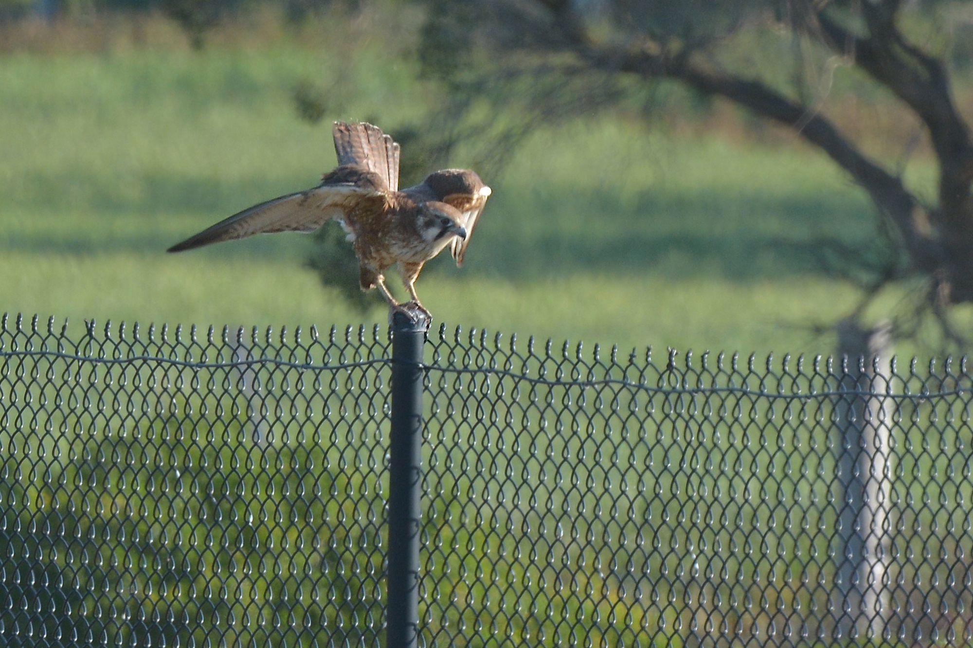Wing stretch in the sunshineTypical Brown Falcons upright stance.Wagtail sliding down Falcon’s back. A pretty well co-ordinated attack.Two Wagtails were among the team of harassing birdsTree sitting to attract attentionShe gets to leave with her nice mouse dinner. She has just transferred it from beak to leg for the journey back to the nest.