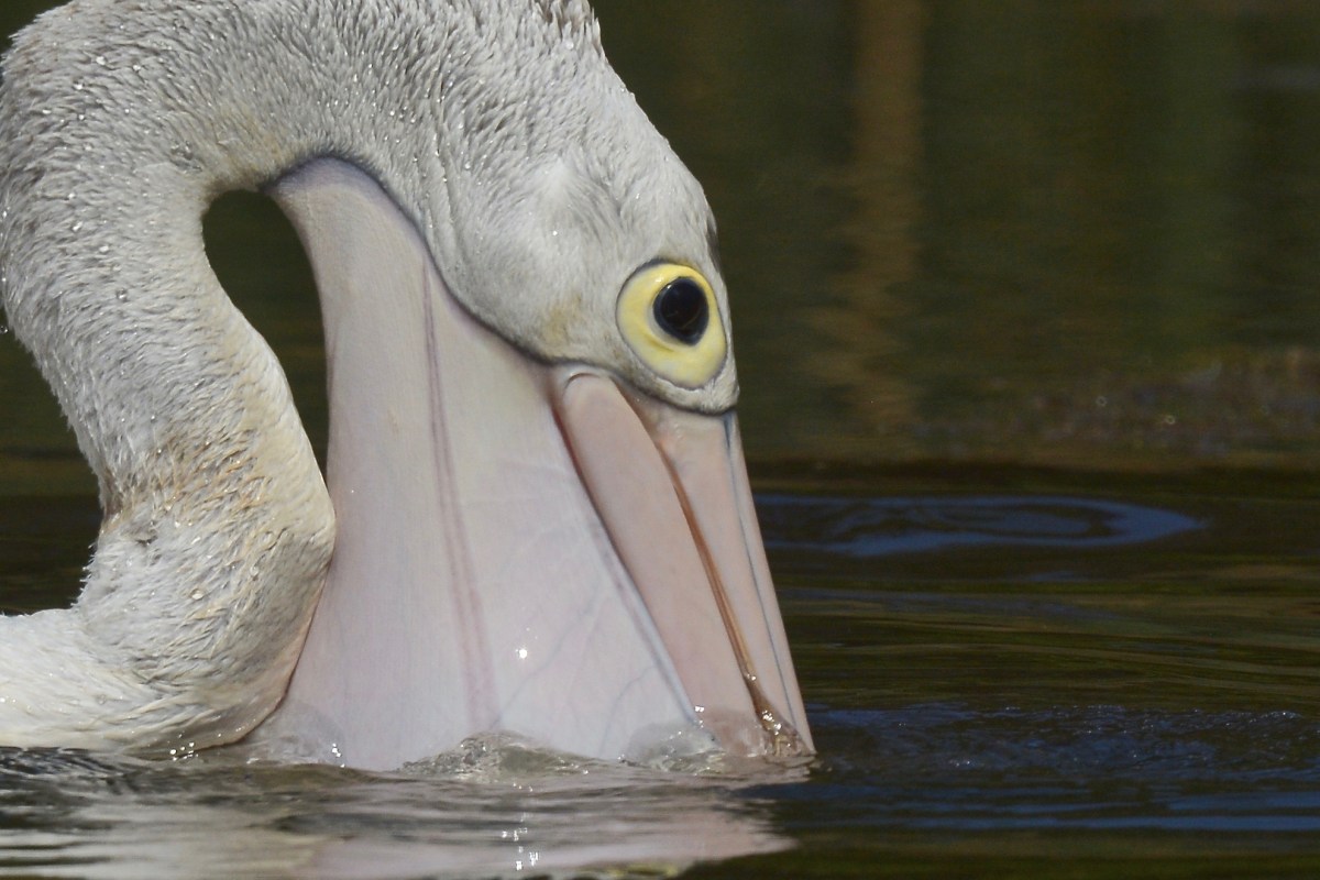 Australian Pelican. Getting down to the business of feeding. Front light de-emphasises the form, and makes a shape statement.