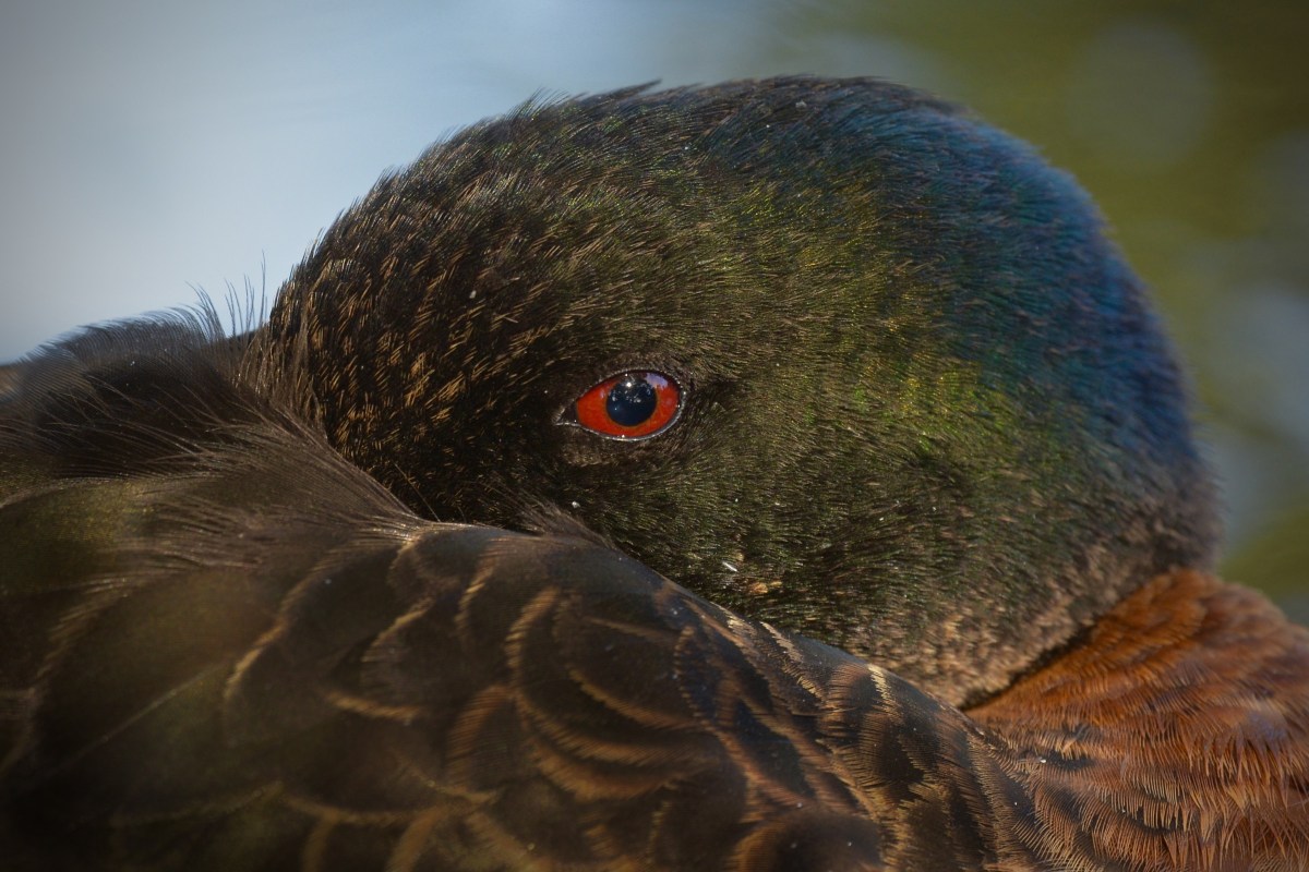 Chestnut Teal, male. A sliver of light to open up the face, and then just wait till it peeked at me.
