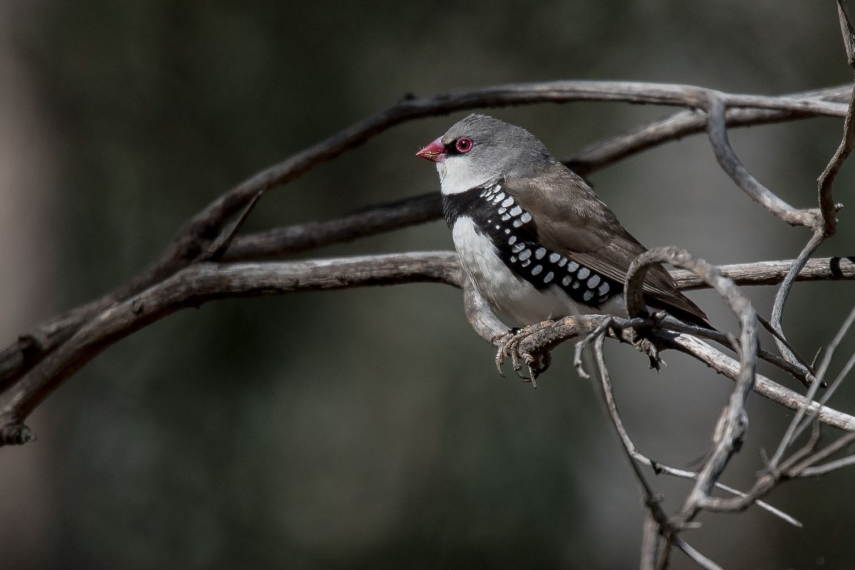 A gem of the forest. The Diamond Firetail. Another bird that seems to flourish in the Grey-box forest at Eynesbury.