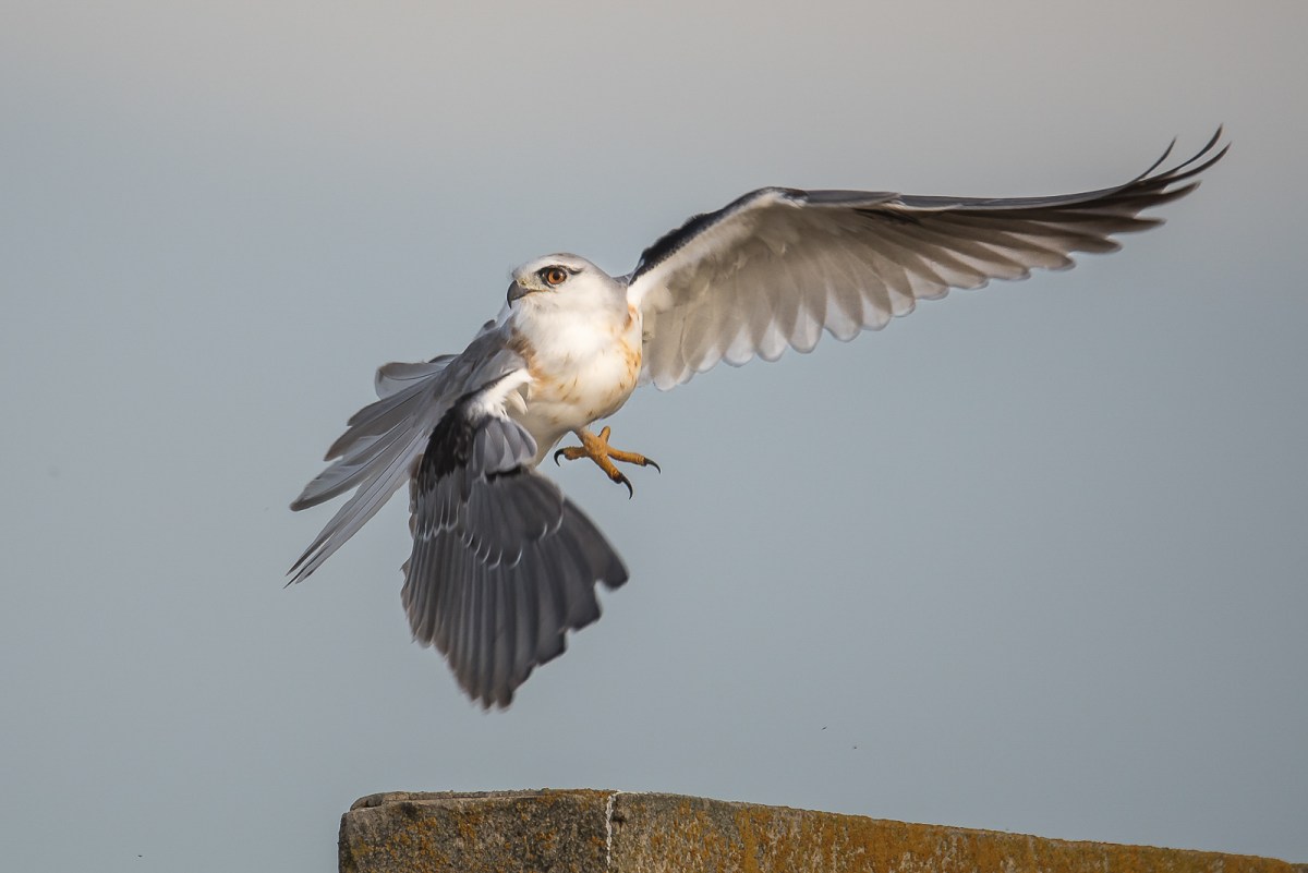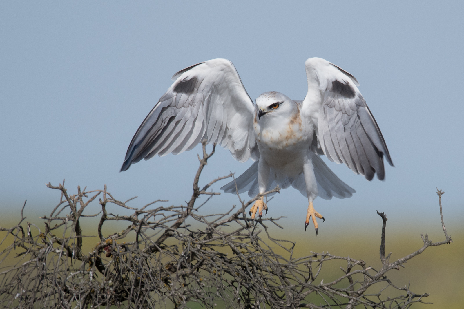 We’ve been tracking a clutch of Black-shouldered Kites down on the 29 Mile Road at the Western Treatment Plant. The young have been on the wing now for over two months, and are now the expert hunters. They are just moulting out the last of their juvenile ginger and grey feathers and the eye is taking on the rich ruby colour of adult-hood.