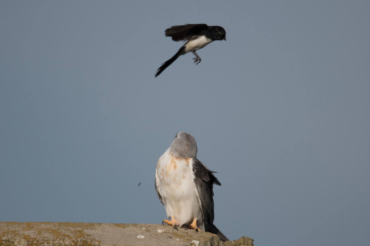While the Kite is no danger to the Willie Wagtail family, there is, of course, for Willie, no reason not to establish territory rights.