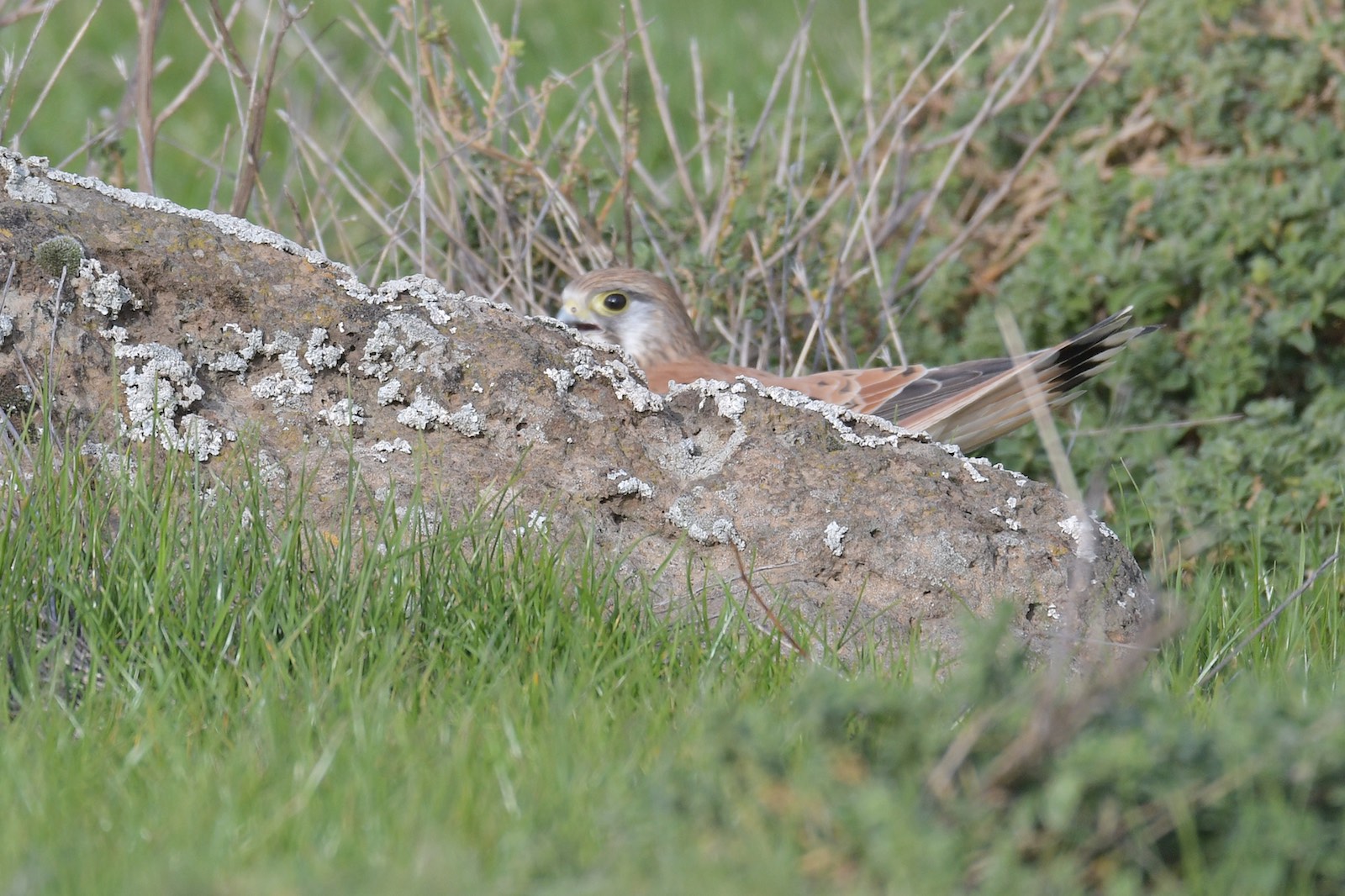 Either way, he landed on a rock just a few metres in front of me and stood motionless. Then walked along the rock, dropped off, and after a bit of rustling in the grass was back on the rock with dinner. Very neat, very efficient and very quick.
