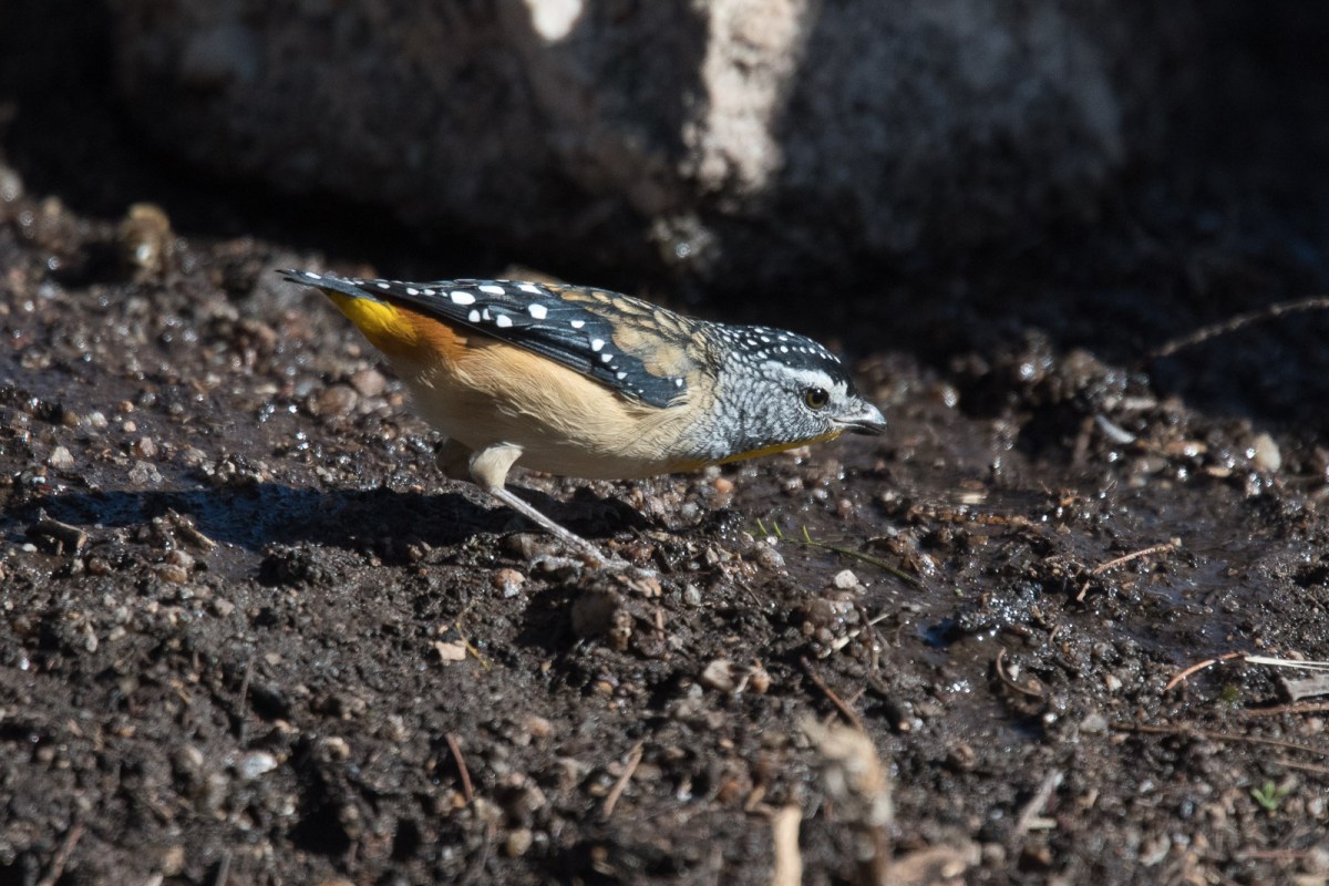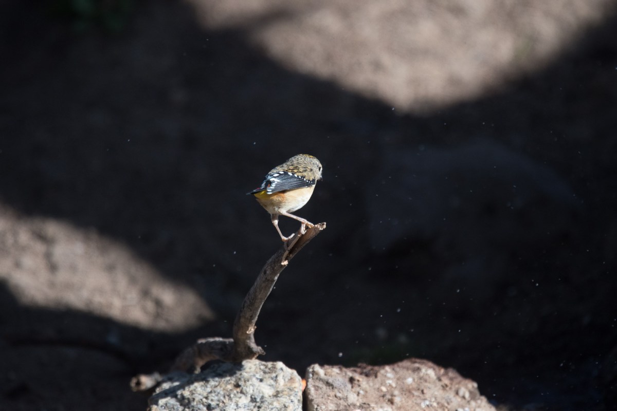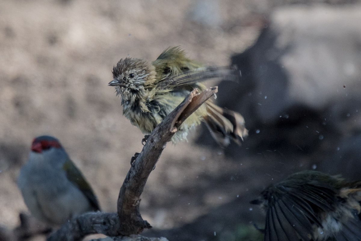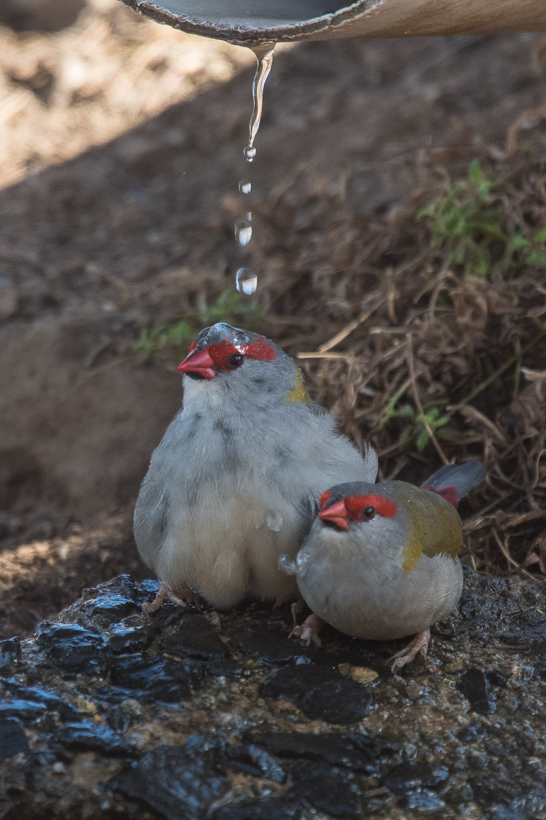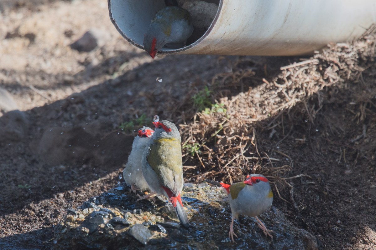 So, we sat, occasionally egressing to push some more water down the pipeline, and drank a cuppa, enjoyed the fun, and felt pretty happy that they were able to enjoy such a precious commodity. When a few Crimson Rosellas came by to inspect, we thought we were made. But the Rosellas didn’t stay. Likewise a passing Grey Fantail, but being photographed was not on its todo list.