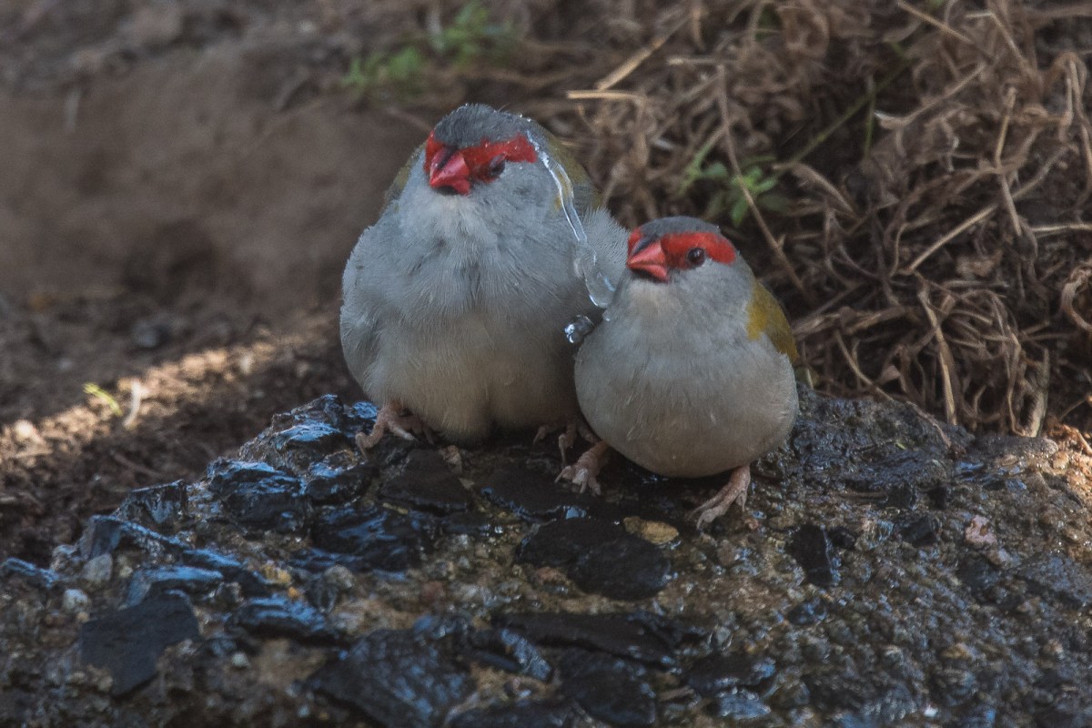 Slowly a tiny trickle of water appeared, and then a stream. And before you could say, “What a waste of Water!!!!”, we had flocks of Red-browed Finches, Spotted Pardalotes, New Holland Honeyeaters, Silvereyes, White-naped and Yellow-faced Honeyeaters, a few familes of Superb Fairywrens, Brown Thornbills, Red Wattlebirds, and two bossy Magpies. Then to top it off both Scarlet Robins made a quick appearance.