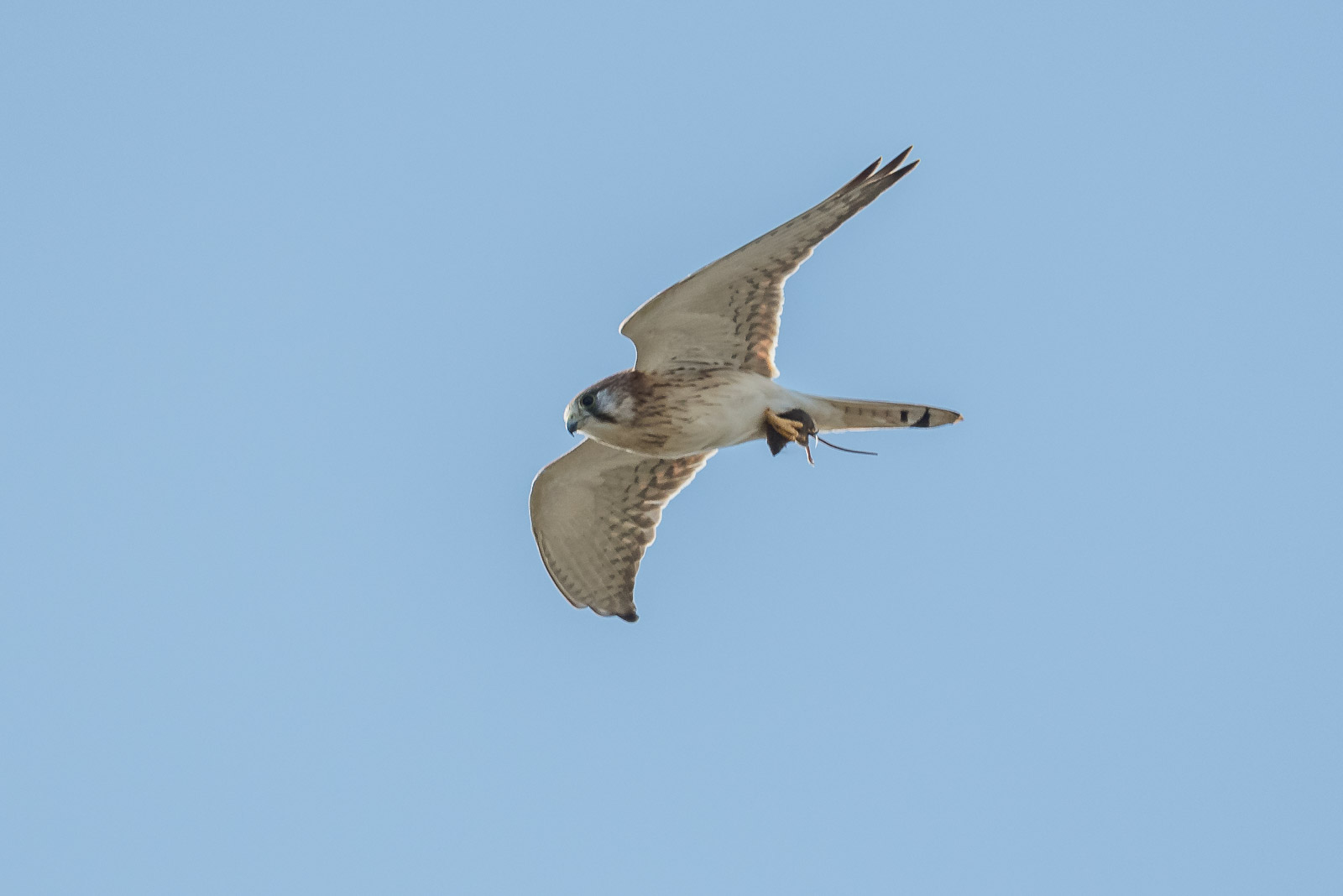 “On the left”, the cry goes up. Turning in my best Tai Chi move, I make a brush knee move to the left, and sure enough, as I swing up the camera, there is David’s friend, ” Georgia” the Kestrel, lining up for a hunt. So we spent the next few minutes in the area, and saw her making a number of catches, crickets or the like, I suspect.