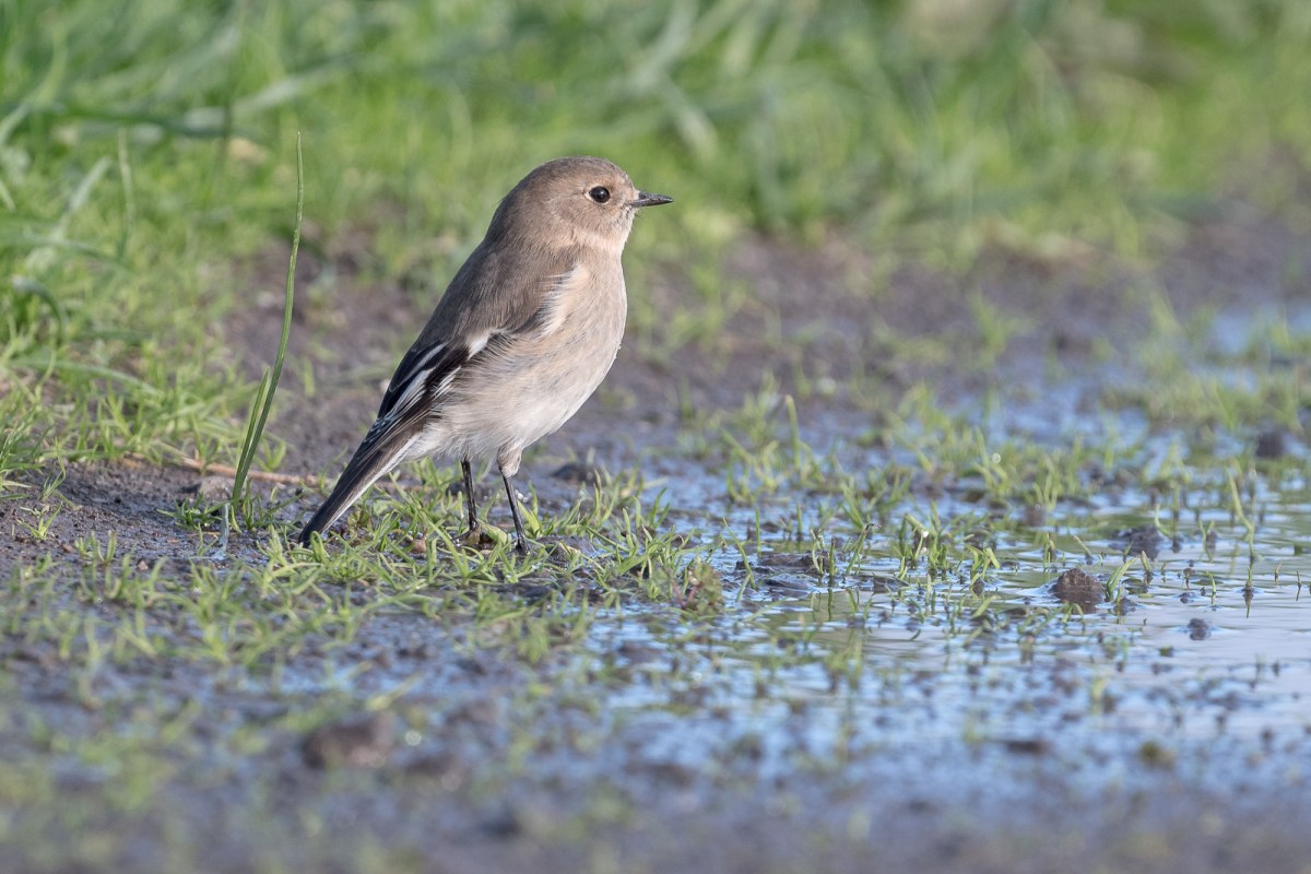 Next we found a single Flame Robin female that was working around a puddle of water on the roadway.