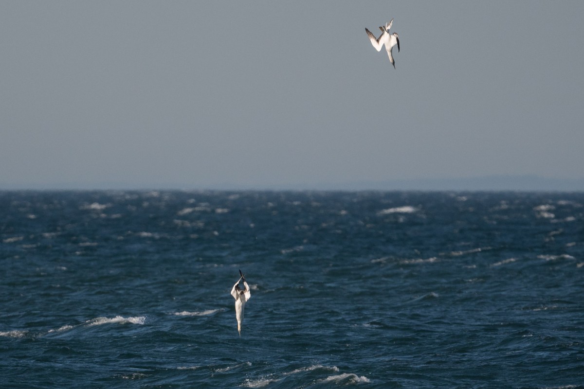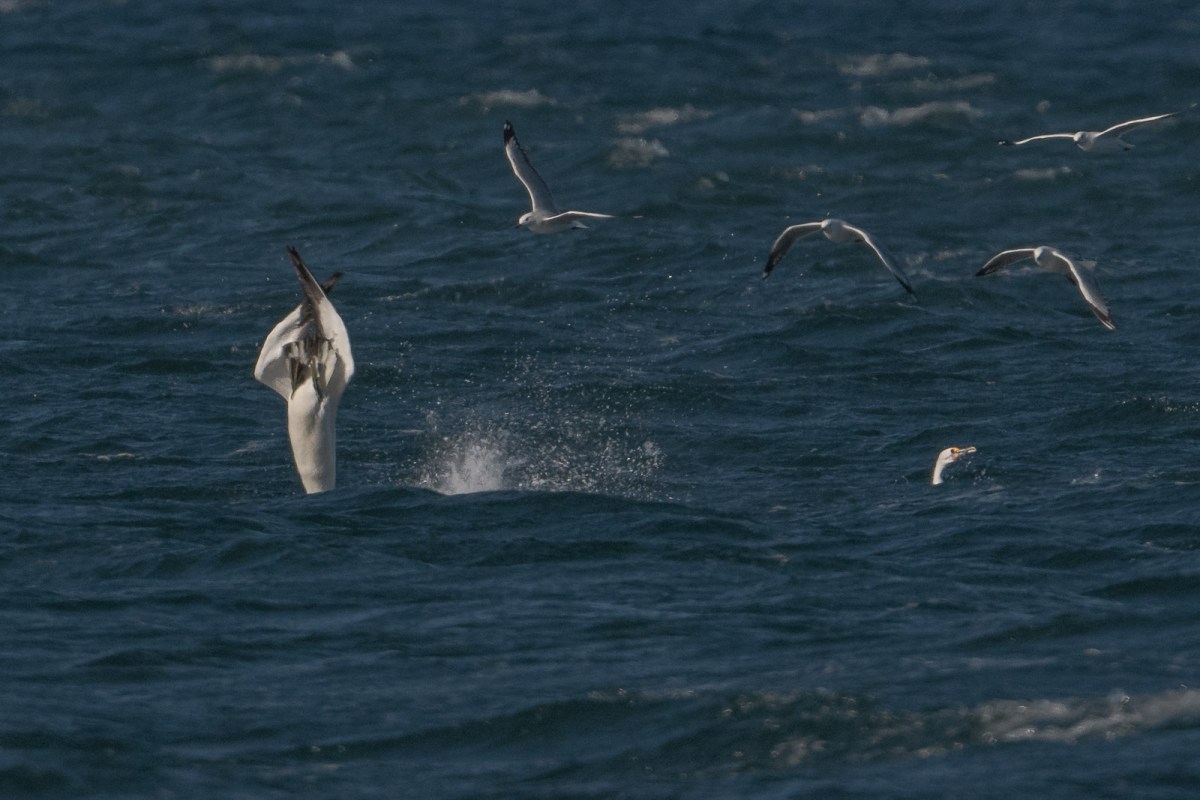 No doubt a school of fish was running along the edge of the sandbank a few hundred metres out. Outstanding among them was 25-30 Australasian Gannets. It’s really only on a Southerly that we see these birds in so close, so it was a bit of a treat to watch their controlled dives. A large number of seagulls and cormorants were also along for the feast and quite a few Greater Crested Terns.