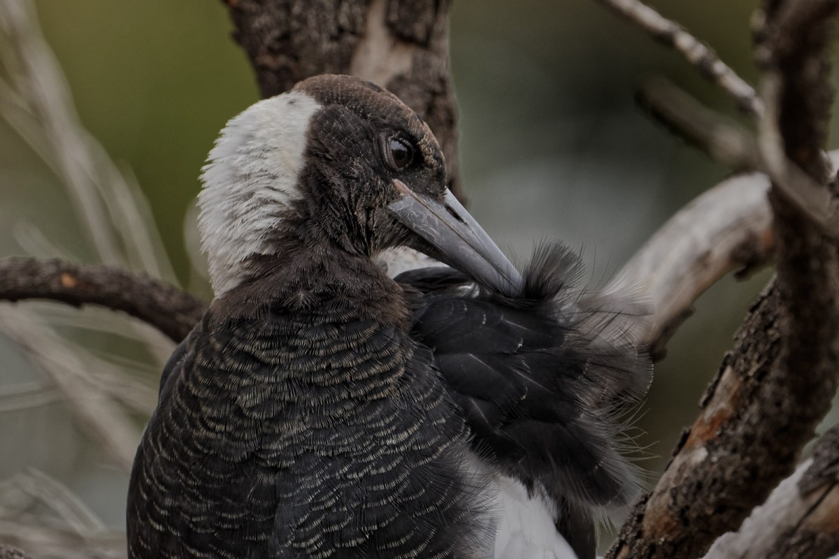 Silvereye at the Water FeatureYoung Australian Magpie engaged in some serious preening, while reminding the parents of its presence.One of several juvenile Grey Shrike Thrush working in the areaA Yellow-faced Honeyeater waits, nervously and politely for its turn at the water.Varied Sittella, circling the branchTwo young Varied Sittella preening and resting while the family feed nearbyA young Scarlet Robin, one of the first we’ve seen in many months. Presumably its a male beginning to moult in.Spotty the Pardalote. This is the male that I showed feeding his young on my Flickr steam.Well not every shot is a winner, but I rather liked the colour set of the Sittella wings