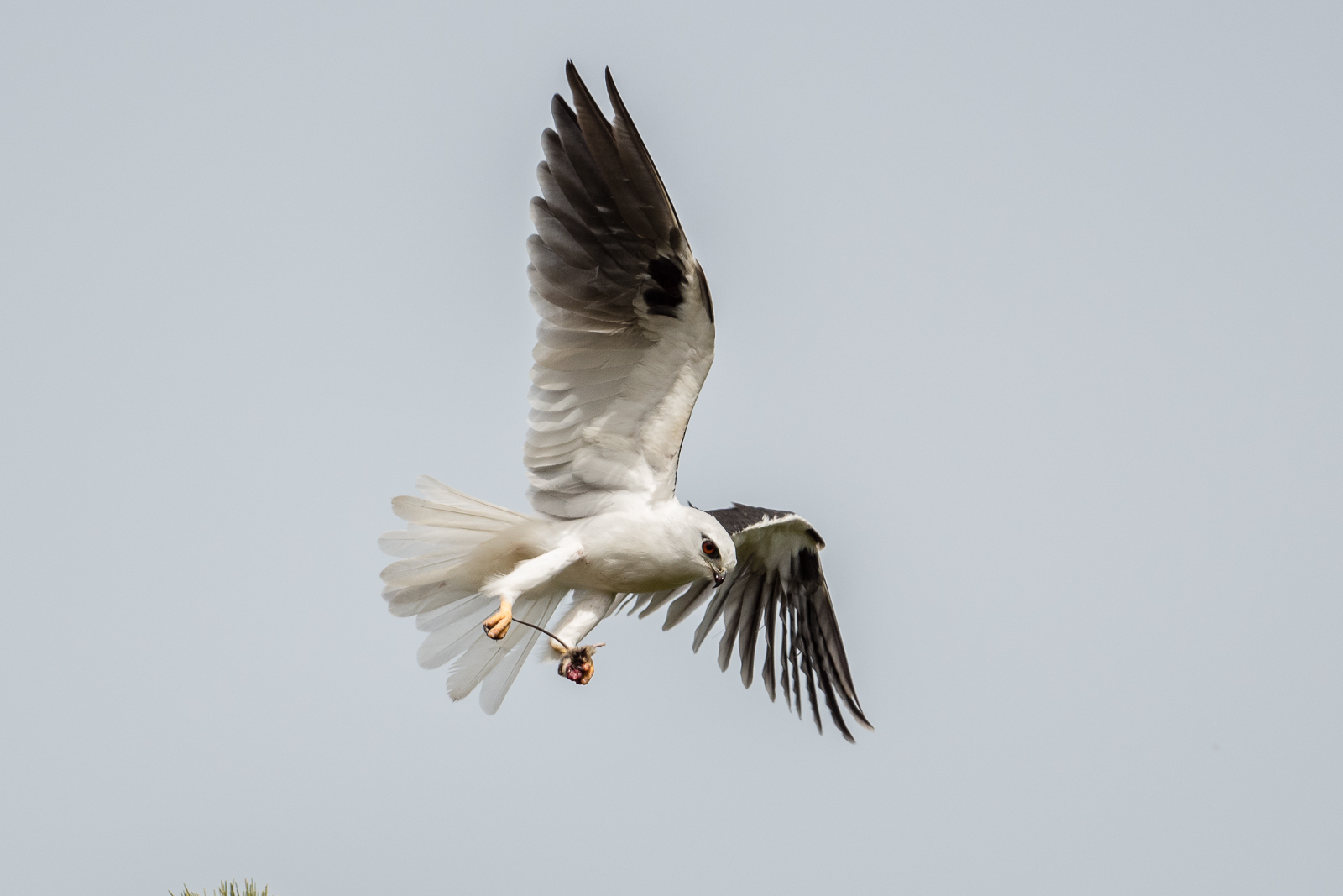 We were much later than we’d like to be, feeding the young happens early, and then everyone in good Black-shouldered Kite practice settles down to snooze until later in the afternoon, when it’s time to trip down the road for the male, to bring in fresh supplies.