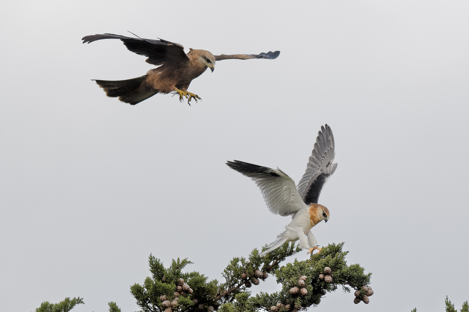 However the young warrior was not having a bar of that and continued to press attacks against the larger birds. What the big birds thought of it would have been interesting. But it tired quickly, and needed to drop down on to the tree for a rest, followed very closely by one aggressive Black Kite. Fortunately nothing came of the attack, and the bigger birds became bored and like teenagers in a shopping mall, moved on to see what else they could find.