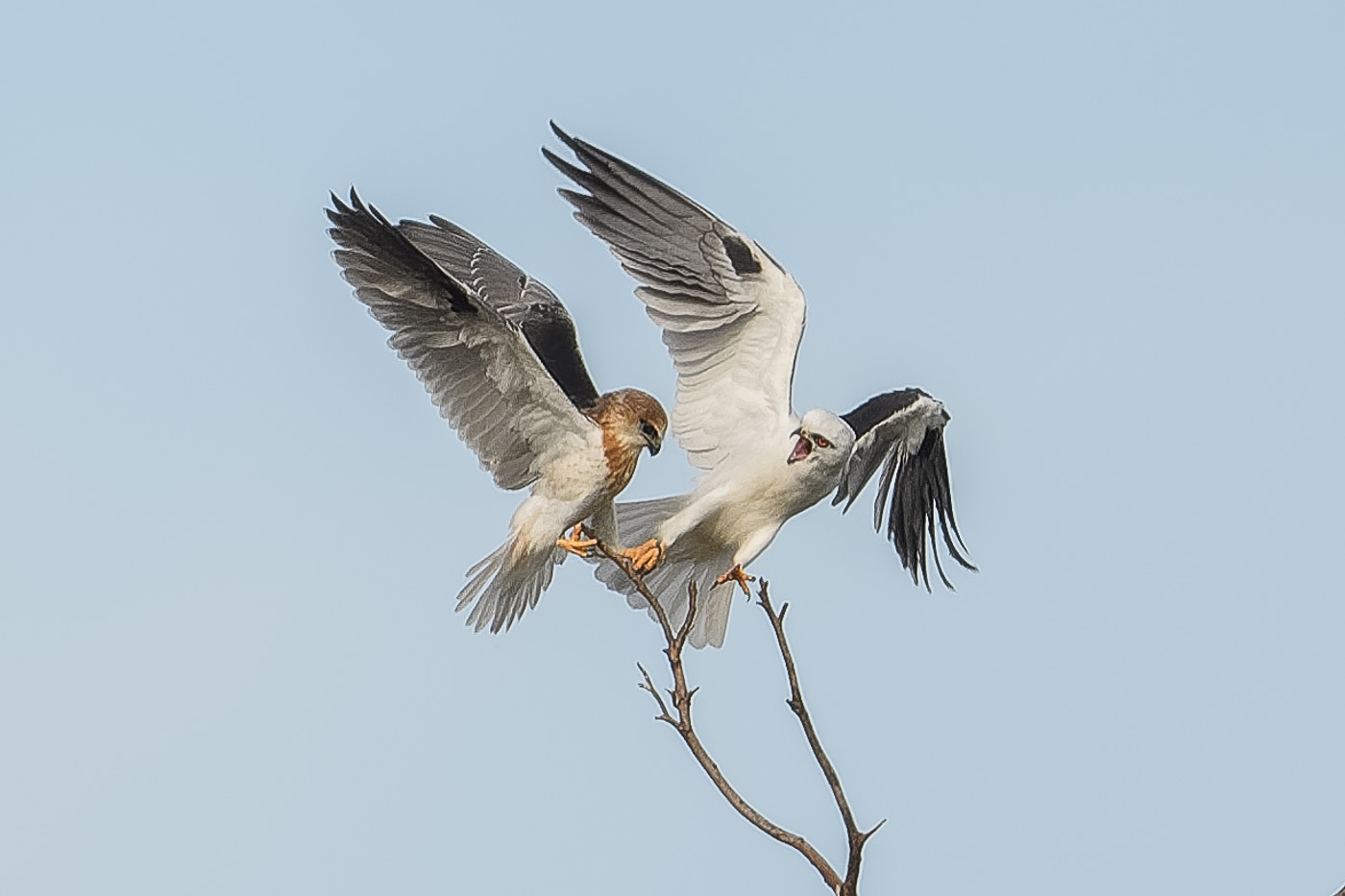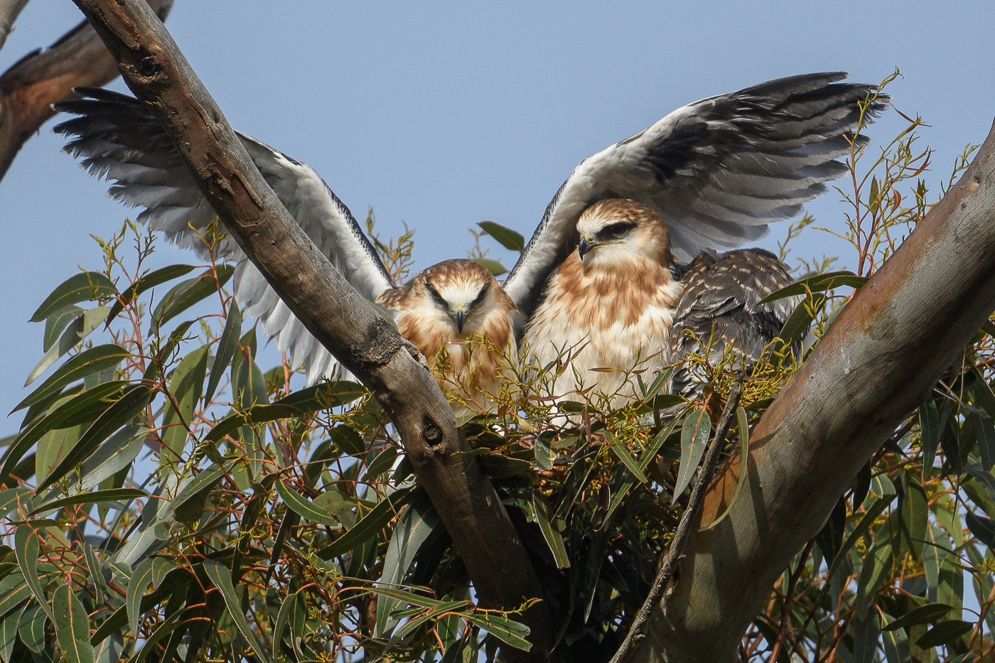 As the young local Black-shouldered Kites have continued to grow, they reached the point where all the necessary training had ended, and they needed to take a leap-of-faith and step off the trees and taste the thrill of flight.