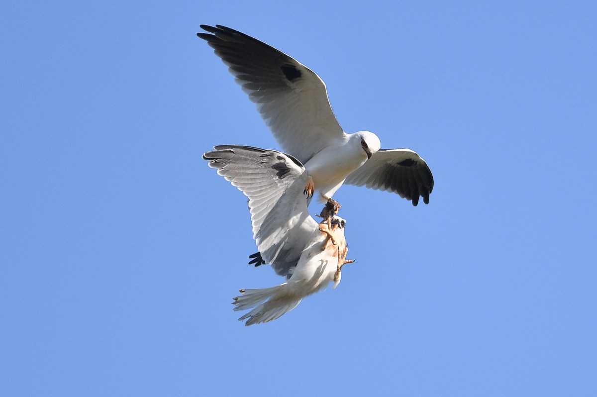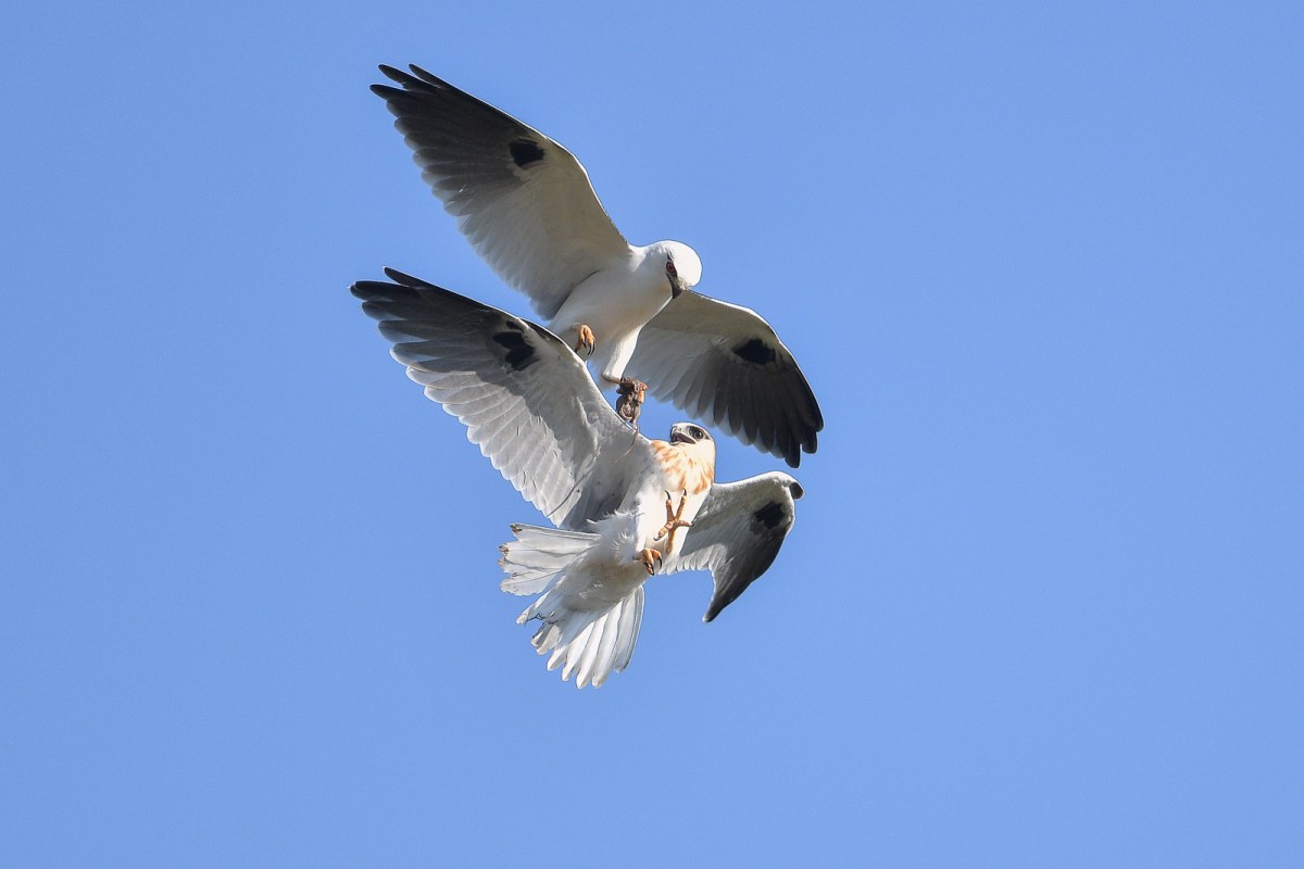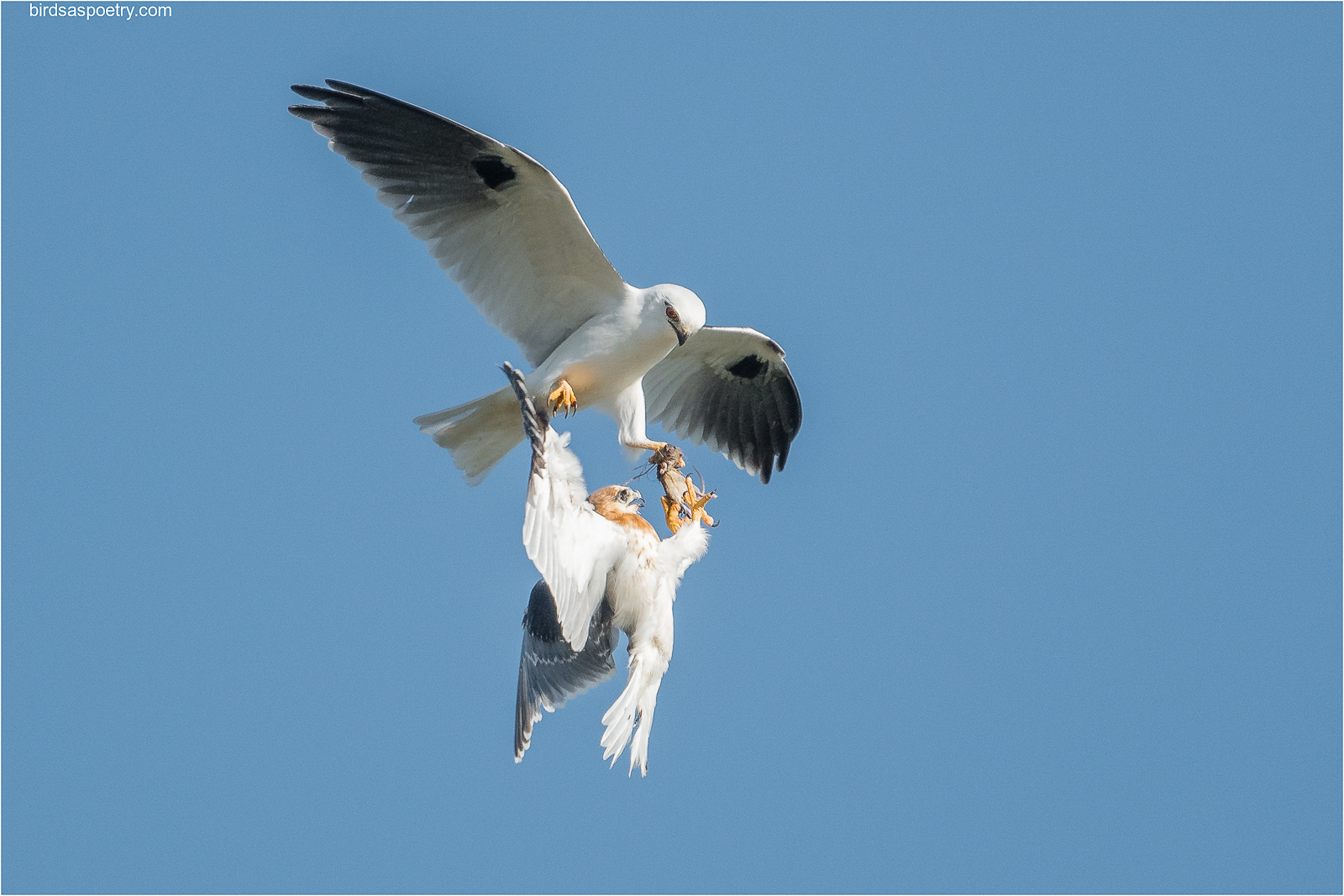 The young had been on the wing for a couple of weeks and had developed their in-flight feeding skills. Poor old Bronson, had more work than a one-armed paperhanger keeping up with their voracious hunger. The female, Belle, seems to play no part in their early training or feeding once they are on the wing.