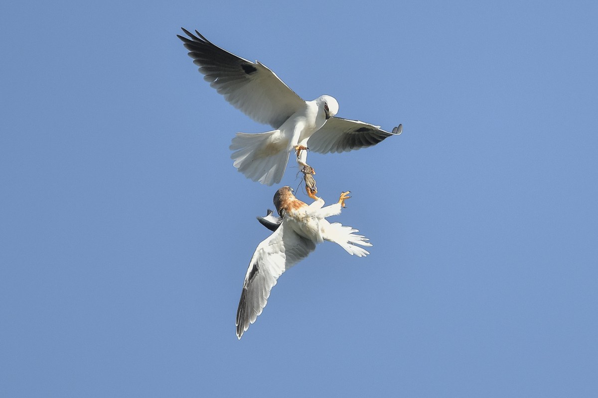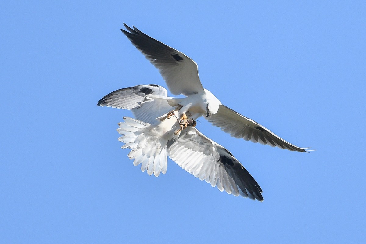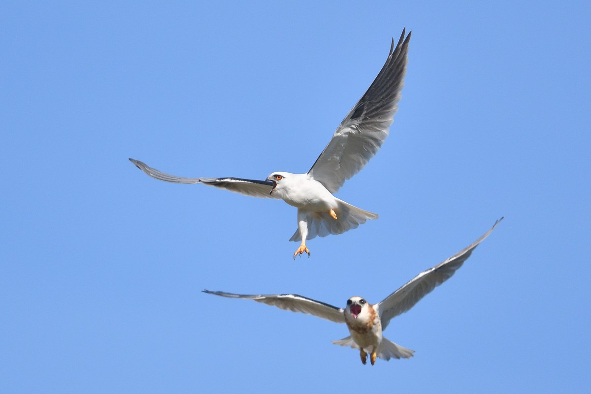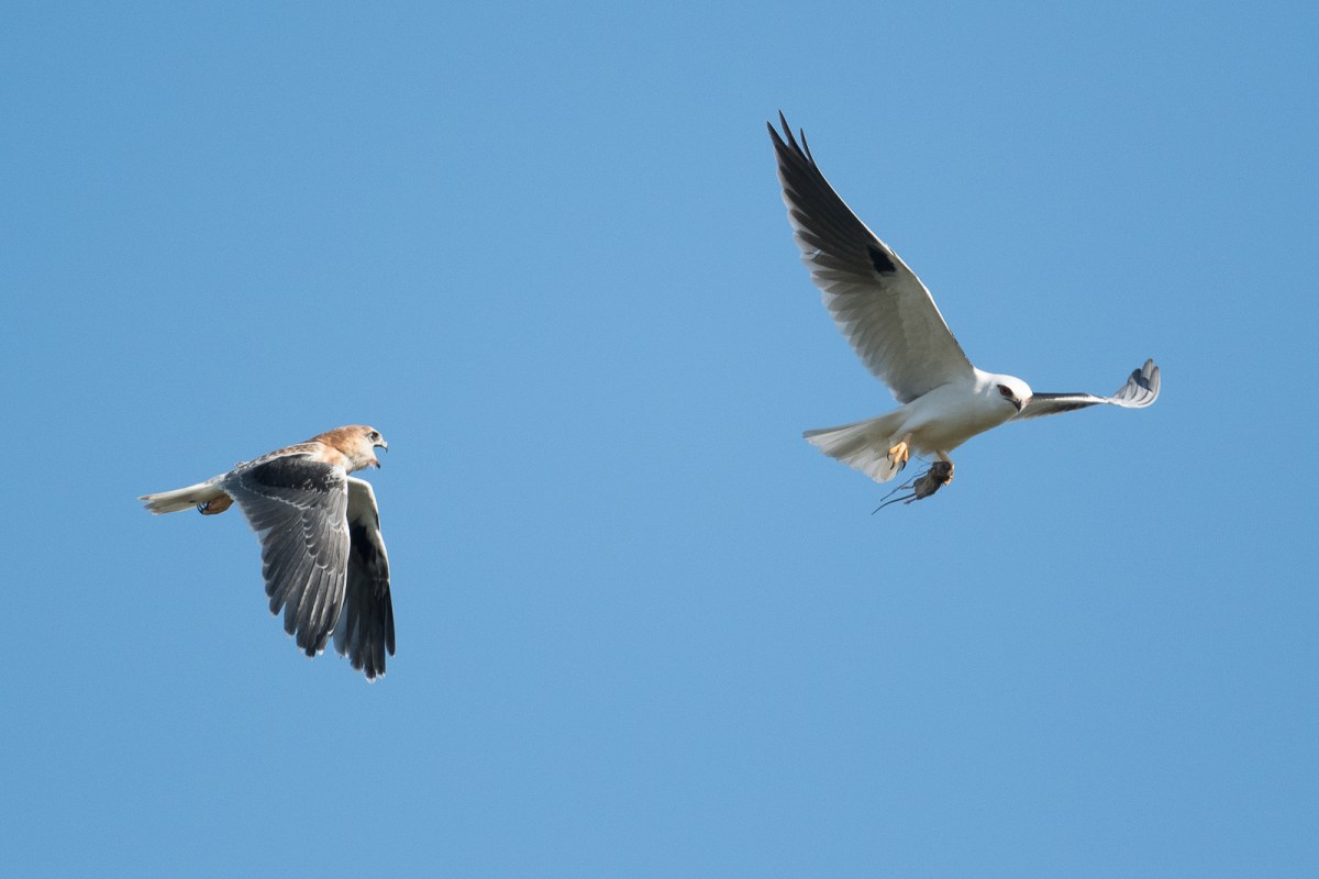 The young had been on the wing for a couple of weeks and had developed their in-flight feeding skills. Poor old Bronson, had more work than a one-armed paperhanger keeping up with their voracious hunger. The female, Belle, seems to play no part in their early training or feeding once they are on the wing.