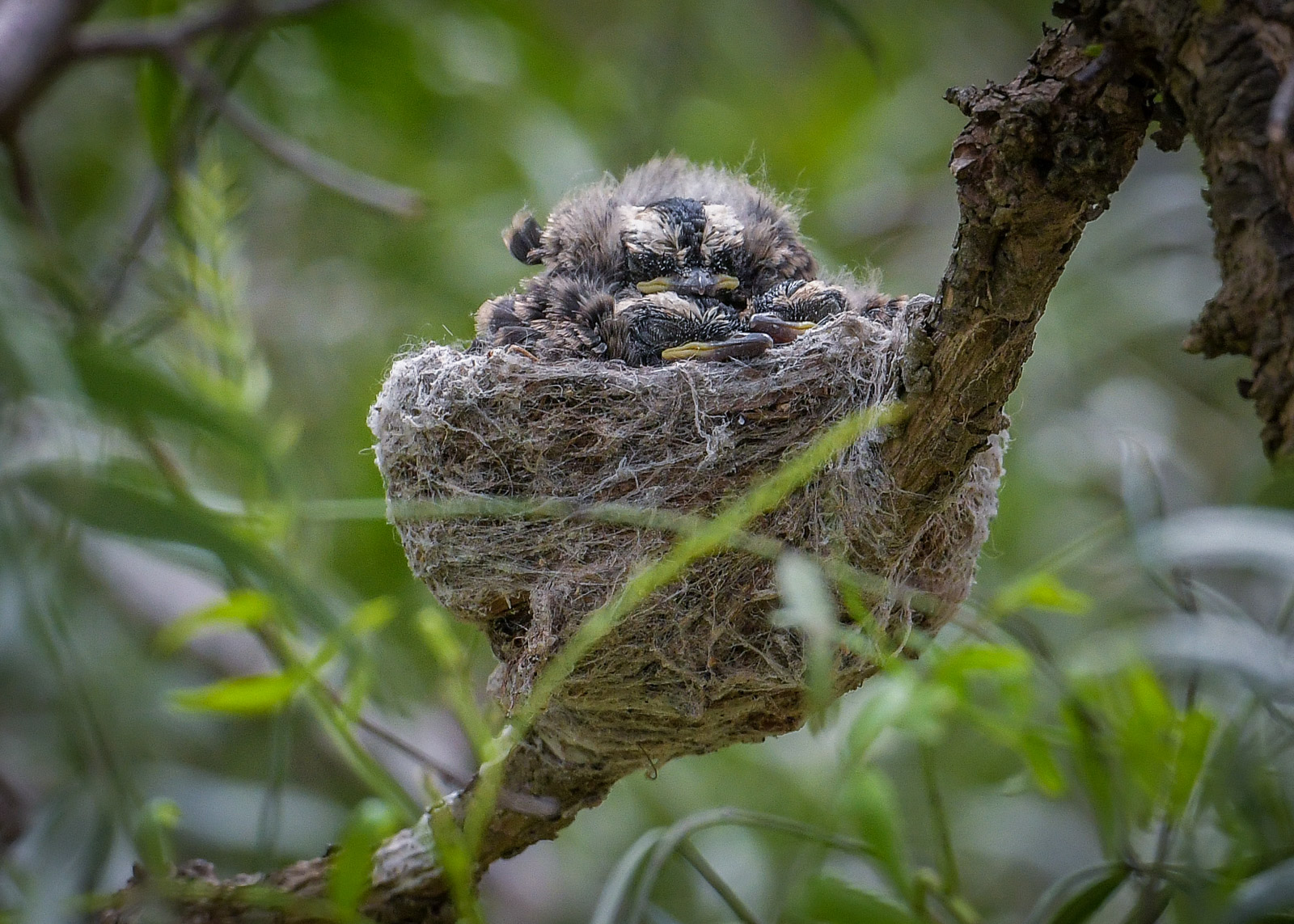 This pair, had chosen both the place and the time rather cleverly. She had nested through the last of the storms and the three young hatched just as the weather picked up, so they have had about two weeks of no rain and winds. Interestingly, on the day that these young flew, the weather turned nasty again. But they should survive in the thicker pines nearby.
