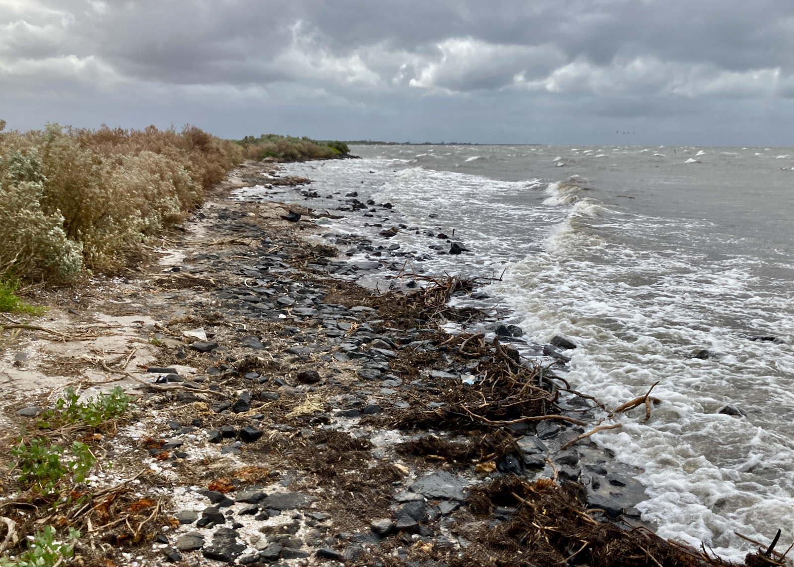 The overcast, rain and high winds did not digress. Nor did they ease off. I may have mentioned before, that I can deal with the poor light and the rain at the WTP, but not the wind. It just makes getting out of IamGrey and standing in the open a truly harrowing experience and one that even the best of birds seems avoid at all costs. For those that might venture there, the track in the “Special Section” that was out along the beach area and barely passable with 2WD is now eroded to the point of being 4WD only.