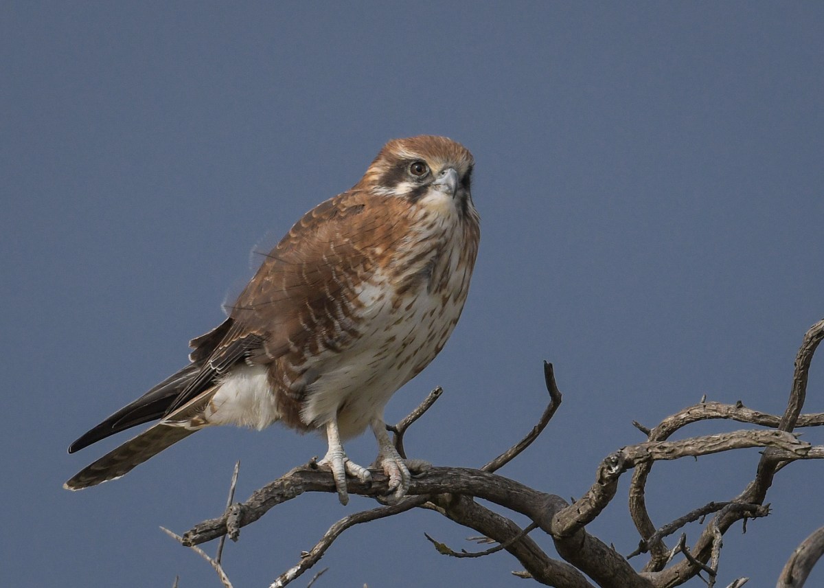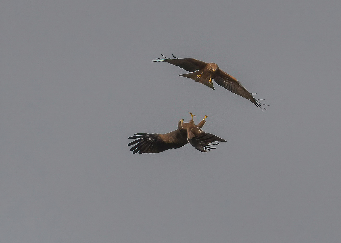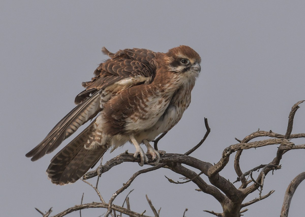 Our first sighting for the day, a Black Kite among the old treesA female Nankeen Kestrel was ‘hawking’ up the remains of breakfast. A little furball lump of undigestible rubbish. We spotted this Brown Falcon ‘walking’ along the road, no doubt it had scored a meal, as it flew to the tree and the next 45 minutes or so we stood with it, as it slowly digested the meal. There is something special about being able to observe this bird, unstressed, and watch its various character traits.Handsome in the early morning light with dark storm clouds building behindA number of Black Kites were also in the same area. It looks like full on dogfight, but these big birds seem to love to play about togetherAnother Black from the same area, and it appears to have nesting in mind.Meanwhile the others continued the gamesYet another Falcon swept in to see what was going on.It didn’t take us too long to find a pair of Black-shouldered Kites at work on nesting. Unlike most Black-shouldered these were nesting in the top of a dead tree in the open.