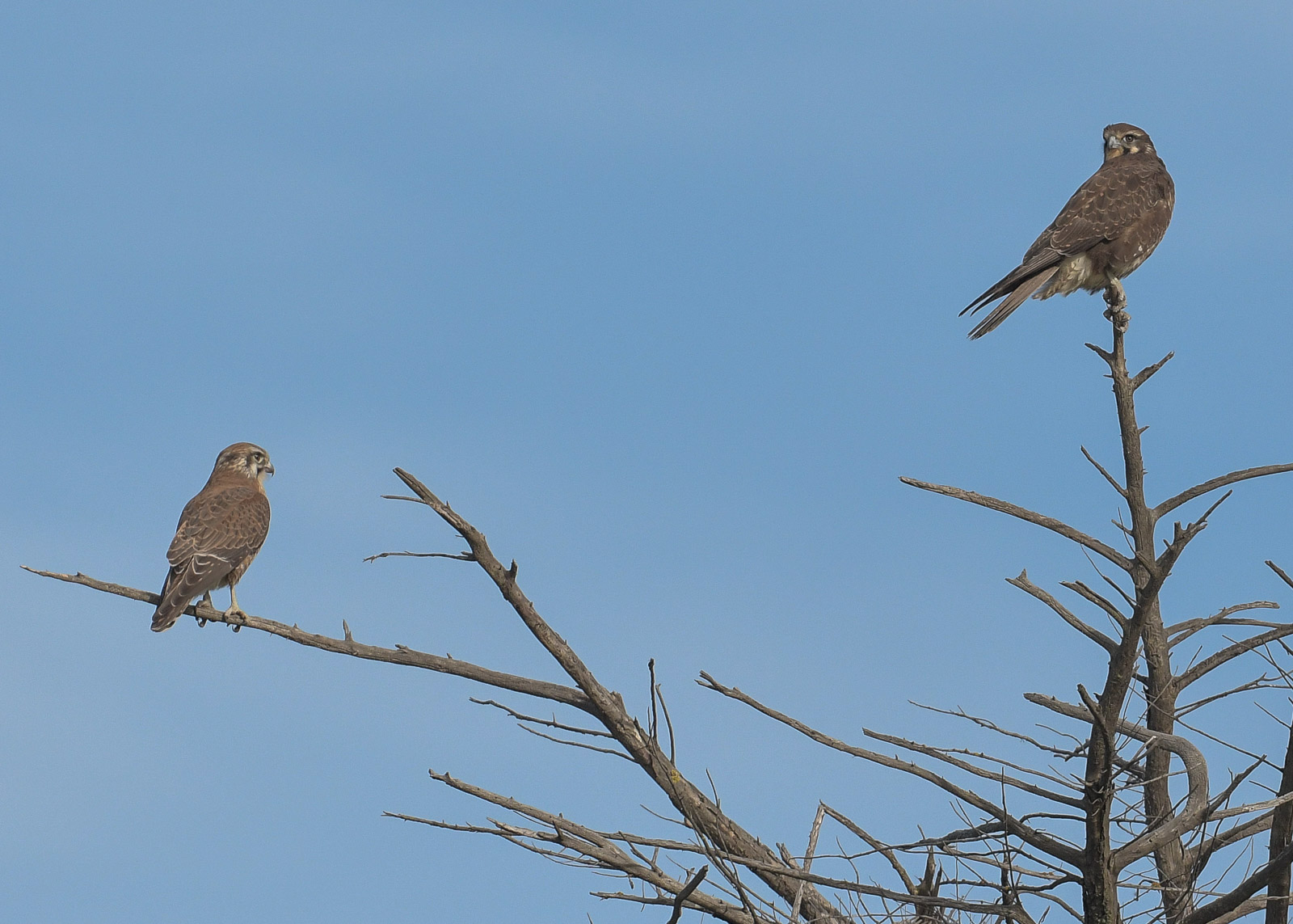 Mike the Black-shouldered Kite is still busy as Madeline is sitting on a new clutch.Interesting to find a pair of Little Eagles. They kept high in the air to prevent the local Magpie neighbourhood watch from harassing them Cassia, of Cinnamon, and Alistair made a brief appearance, and were happy to sit together and exchange calls. While not a resident, this Hobby is making occassional shows through the parkFive Whistling Kites were out for a morning’s fun. They kept us entertained as they chased each other through the treesWe haven’t seen good number of the kites for a couple of seasons. The wonderful rich wing markings that kind of resemble a studded jacket were a treat. Such big birds, yet so highly manoeuvreable through the trees.And as we headed for home we found two Kestrels at hunt