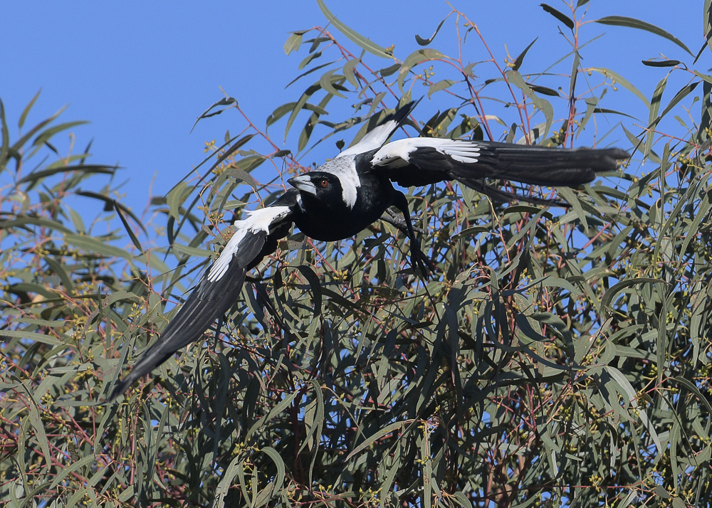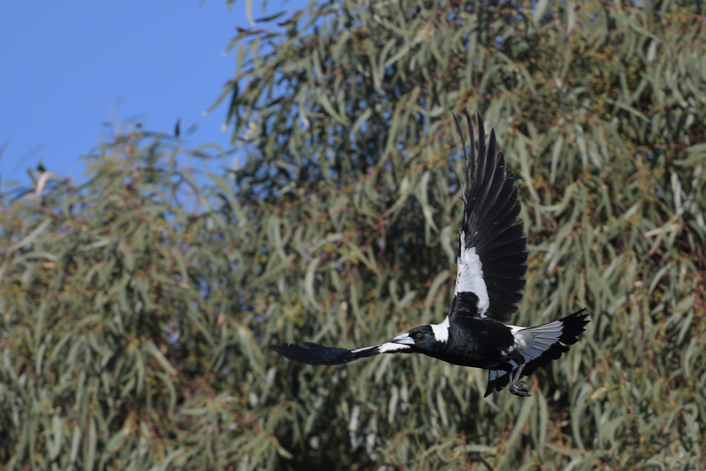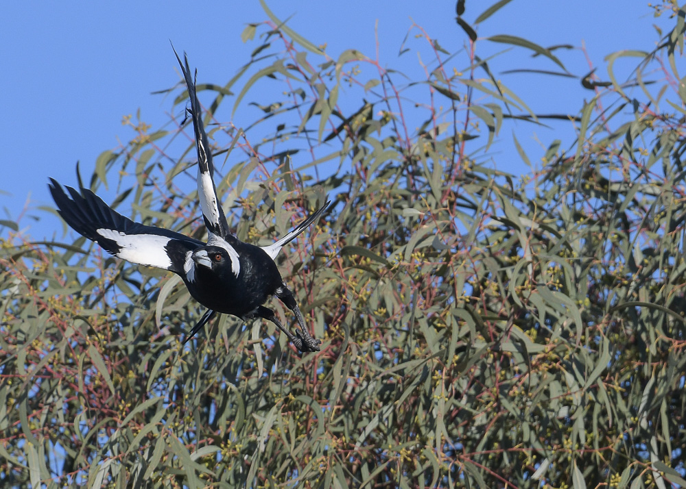 Madeline and Mike at Point Cook have been working on a second clutch for the year. Progress seems to be slow and it’s hard to determine at what, if any, stage the clutch, if indeed she has layed, is progressing. The tree area is also favoured by the local Magpie clan, and a number of Little Raven pairs. (They are now busy carrying sticks and settling in). So, tree and air space are becoming a little crowed for Madeline and perhaps her progeny.