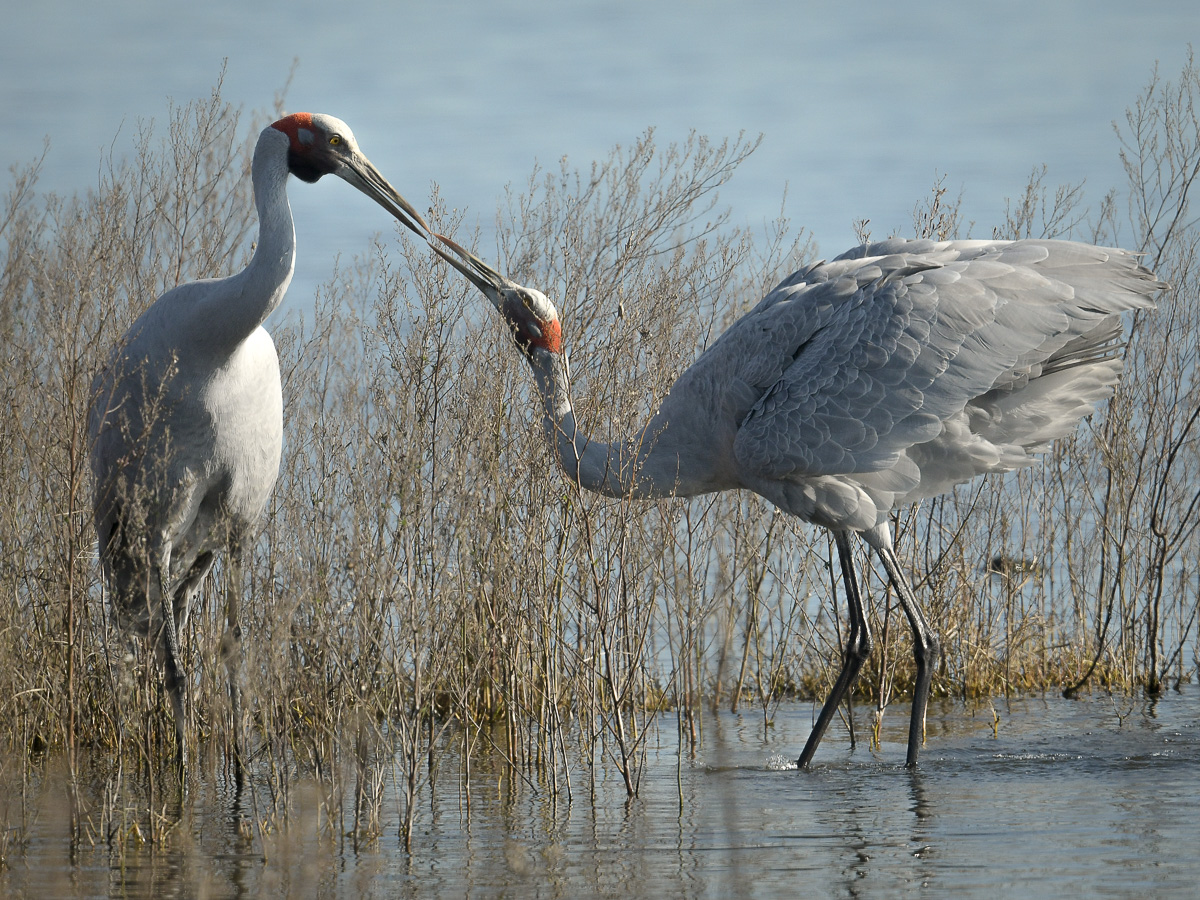 When on a sudden, one stood up, waved its wings, touched beaks with the other and proceeded to waltz around the grasses and out in to the water.