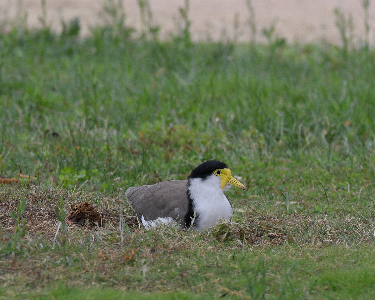 A Masked Lapwing has decided to take a snooze on the side of the track. Totally unphased by passing foot traffic.