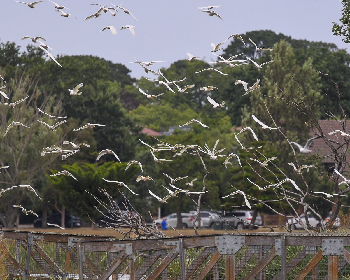 The highlight of the hour or so was several Great Crested Grebes. And we did spend quite a bit of time photographing insane Corellas as they flew about in large, super-noisy flocks. I’ve never been sure as to what puts them into a frenzy, but once started its self-multiplying and they just keep going until everyone runs out of energy.