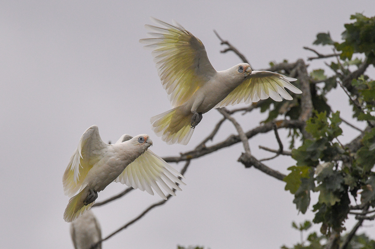 With so much action its hard to keep just one in frame. This is a Long-billed Corella