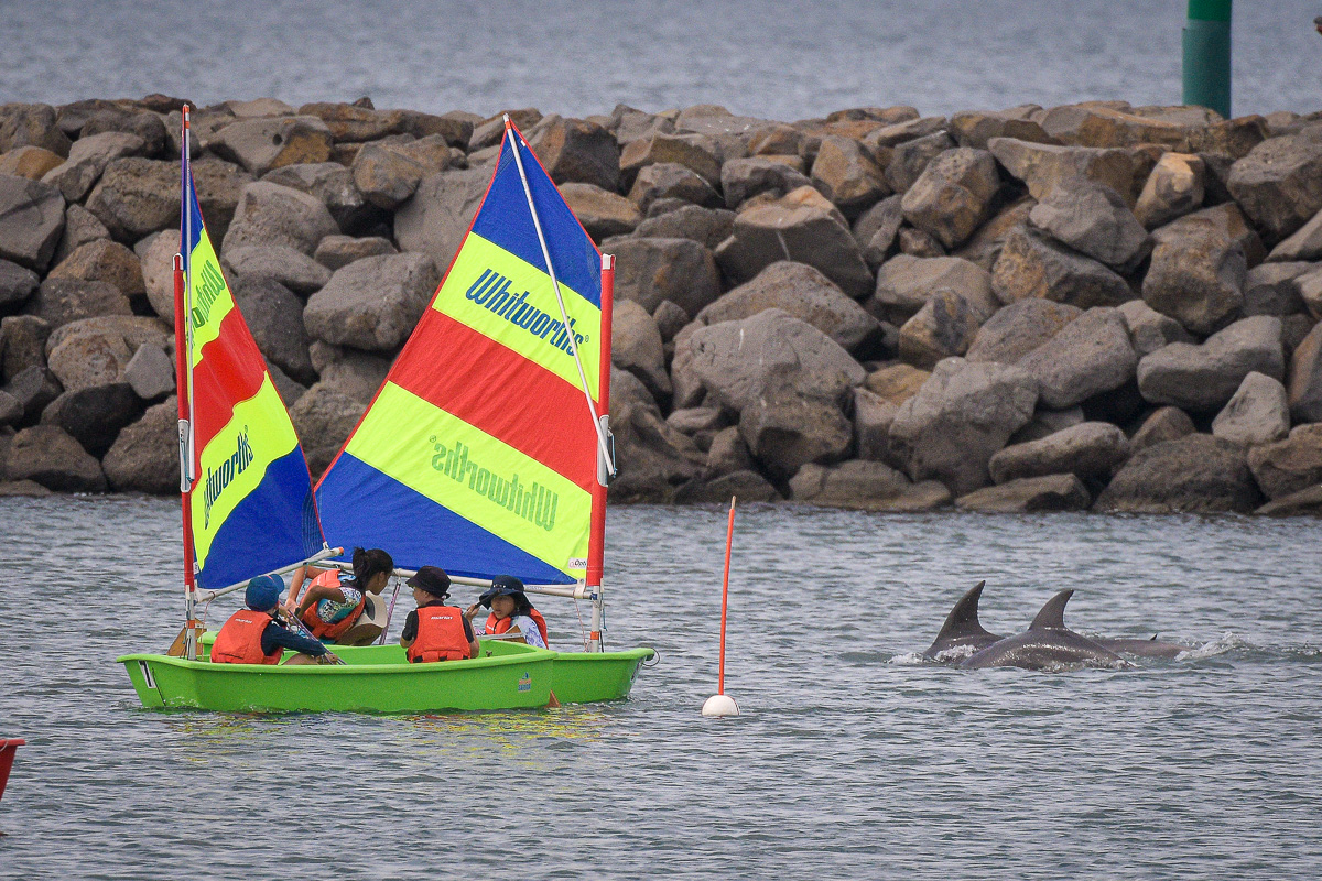 Being a protected species, there are certain rules about distances of approach and the like, to protect the creatures, but it seems this pod had not read those regulations and were happy to move among the moored boats in the harbour as well as provide some extra excitement for the kids as they passed close by.
