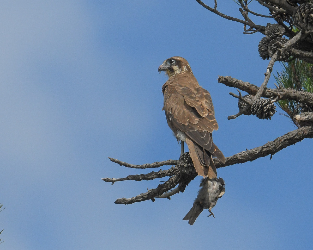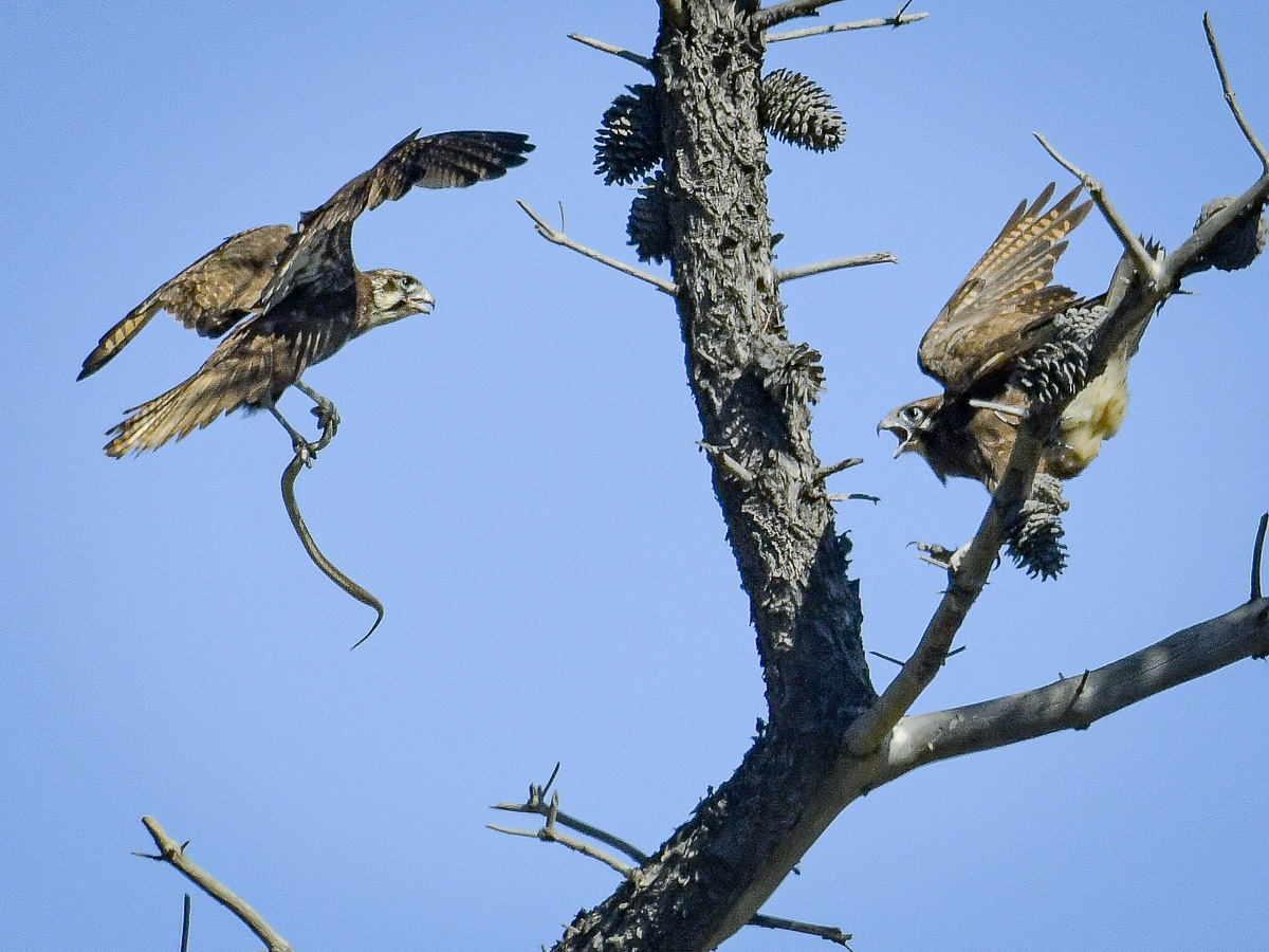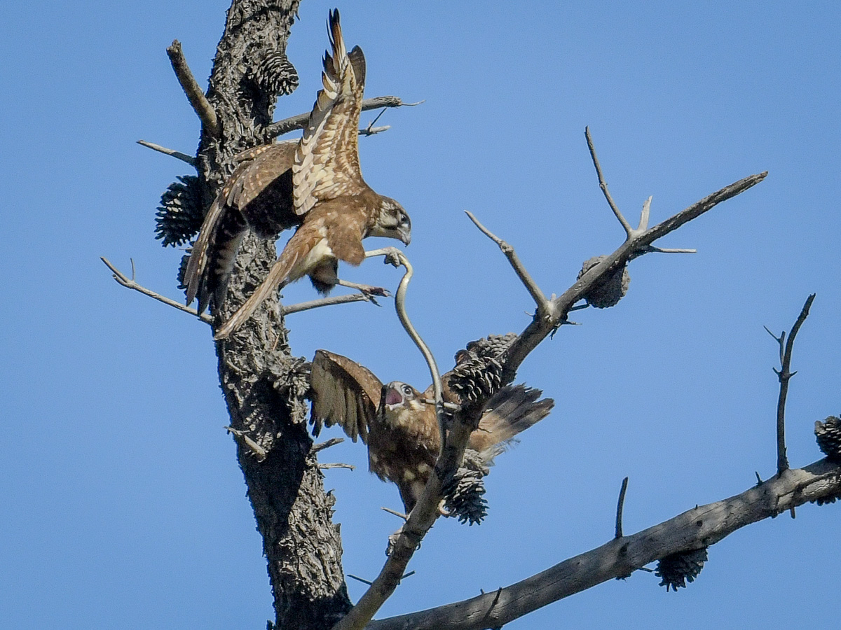 I waited on the far side of the treeline, and again, time passed, and then he appeared with yet another snake. (this bird is building an impressive record) She finished the meal and then flew directly to the top of an umbrella pine and disappeared.