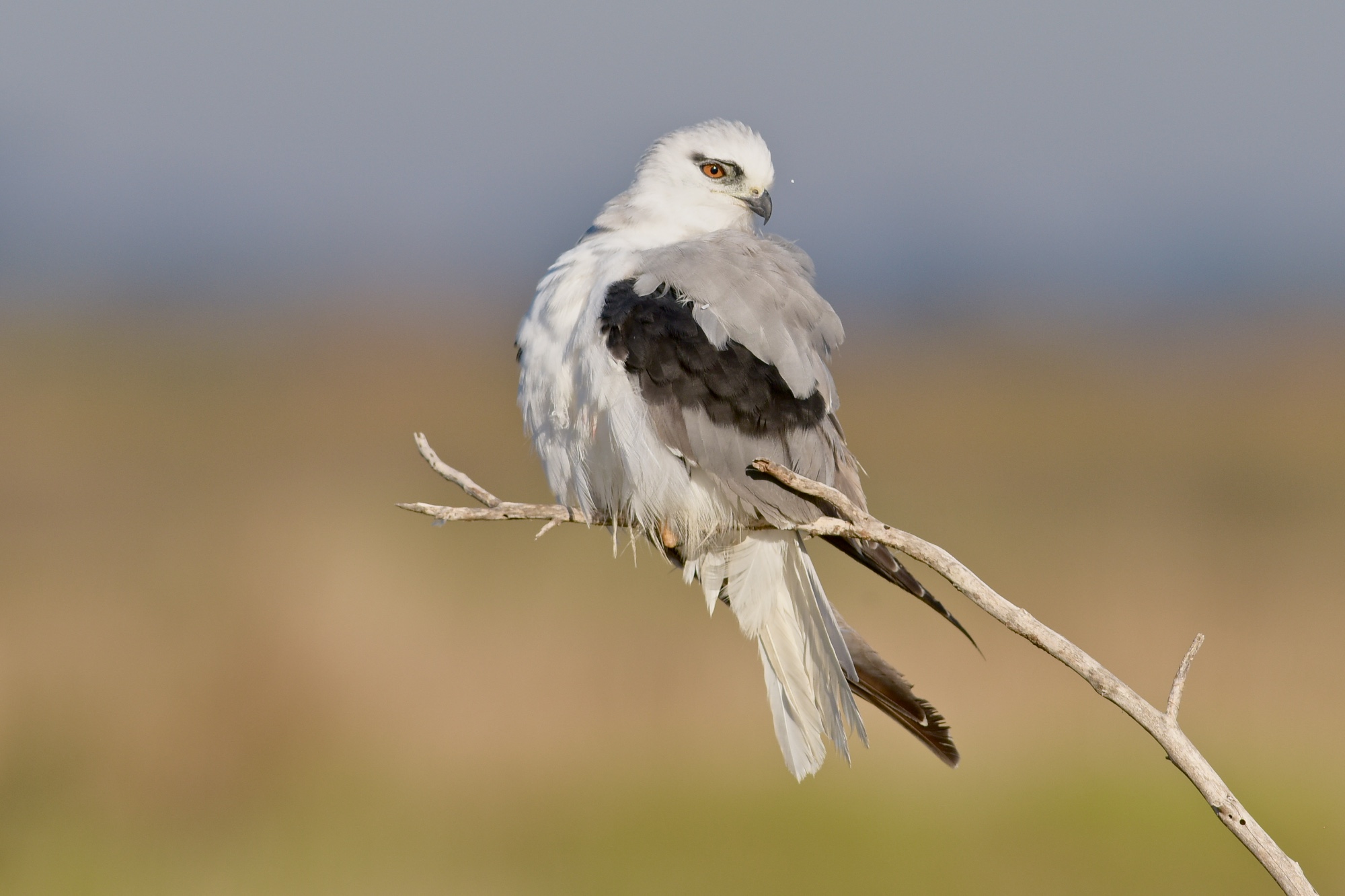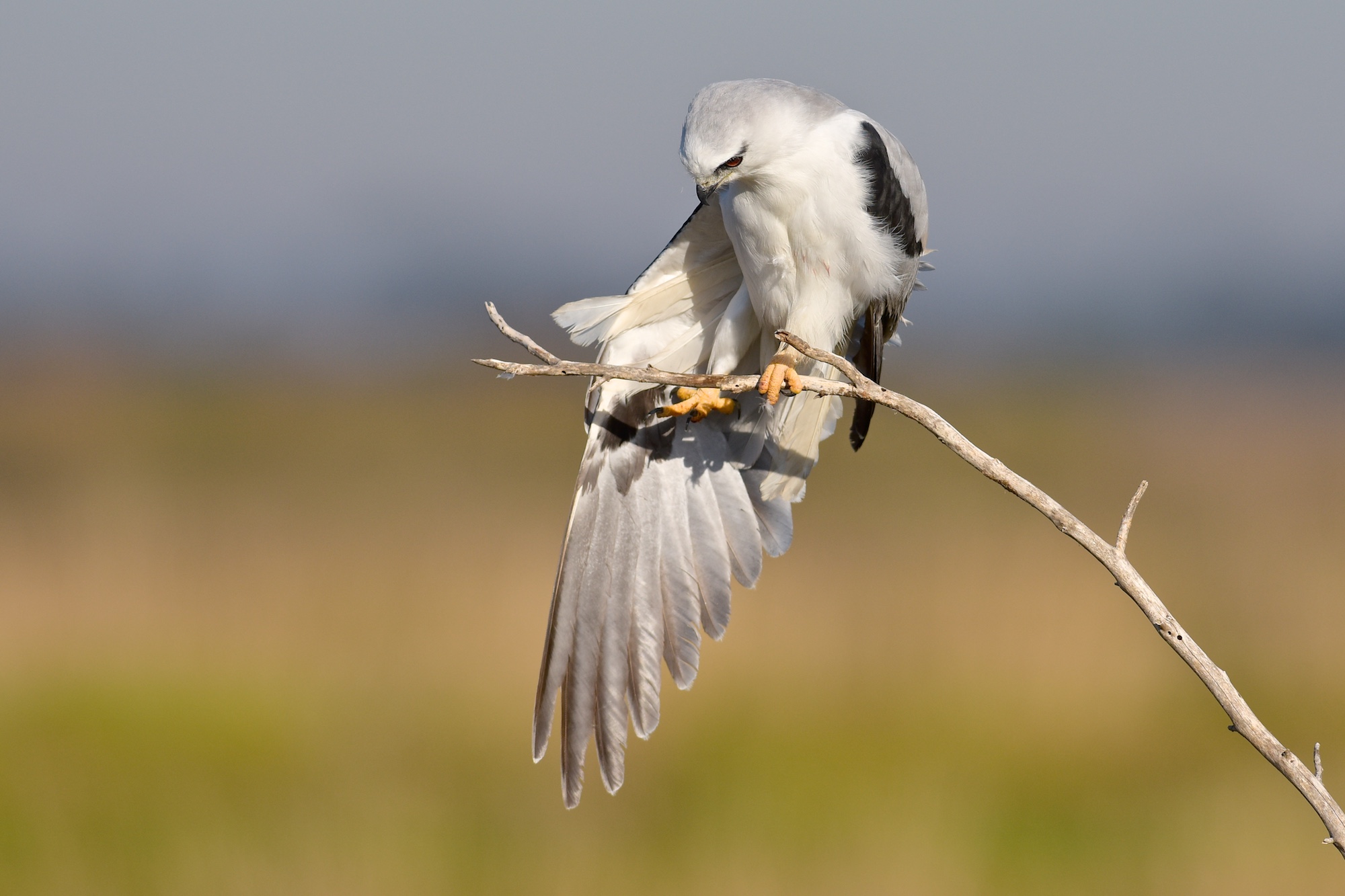 We’ve been tracking a clutch of Black-shouldered Kites down on the 29 Mile Road at the Western Treatment Plant. The young have been on the wing now for over two months, and are now the expert hunters. They are just moulting out the last of their juvenile ginger and grey feathers and the eye is taking on the rich ruby colour of adult-hood.