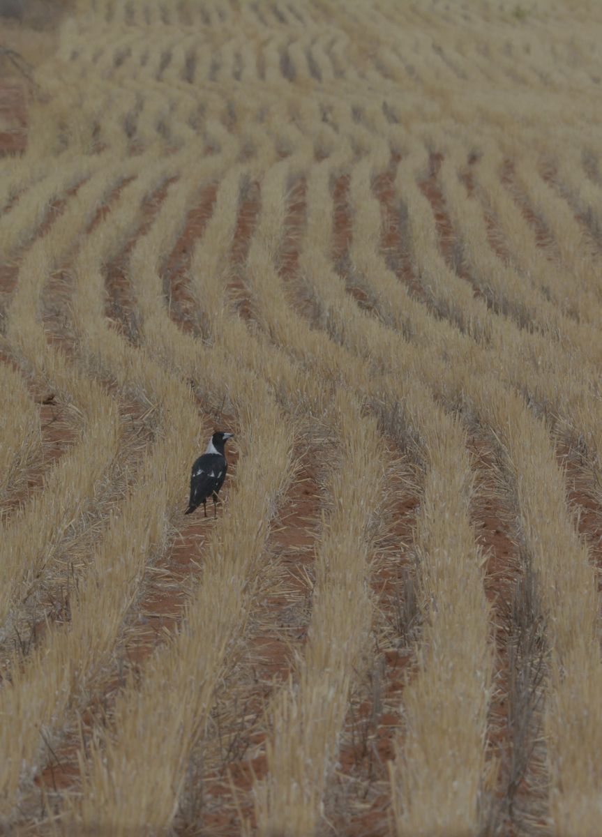 Every one gets up early. Australian Kestrel, female, in the first shafts of morning light.Juvenile Black HoneyeaterSinging Honeyeater. Another Zorro BirdTiny red wattle behind the eye on a White-fronted Honeyeater. Most likely a nomad to the area.A Red-rumped Parrot in flight.Mr Hooded Robin. A pleasure to photographLong rows of harvested wheat leave interesting patterns. Only a Magpie can work them out.One year, two year. Same bird, same wire, same photographer.Wedge-tailed Eagle looking for a thermal.