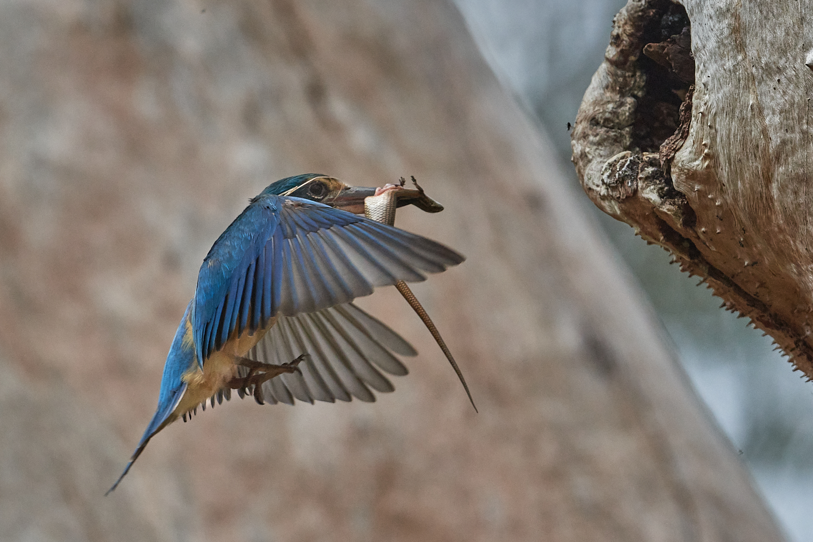 Then a few wing-flaps and he had delivered the meal to a hole in an old tree just across a small dry water course.