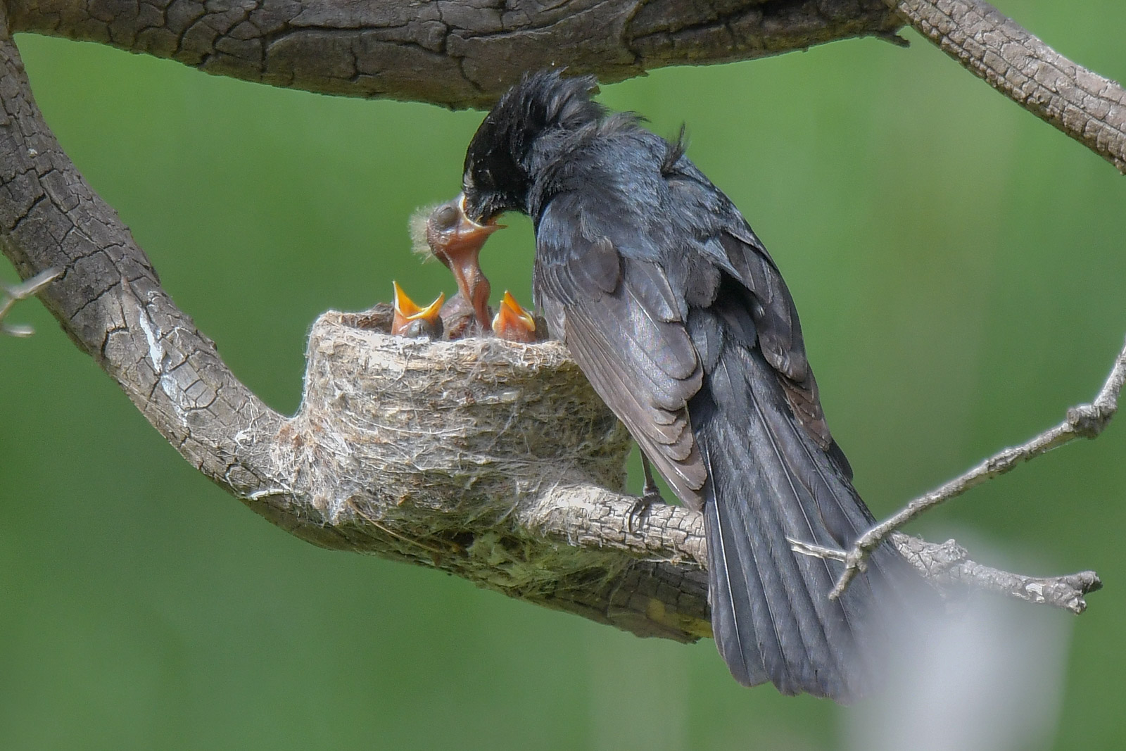 I’m not sure if this one was entirely stuck, or just couldn’t get a purchase with its beak to leverage the wider bits out of the tiny hole. So it stuck its head out, and as much of its body as possible, and swung about trying to get a beak grip.