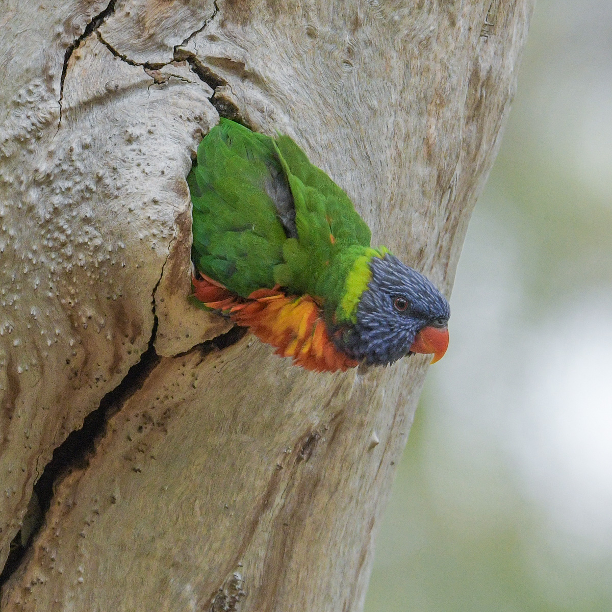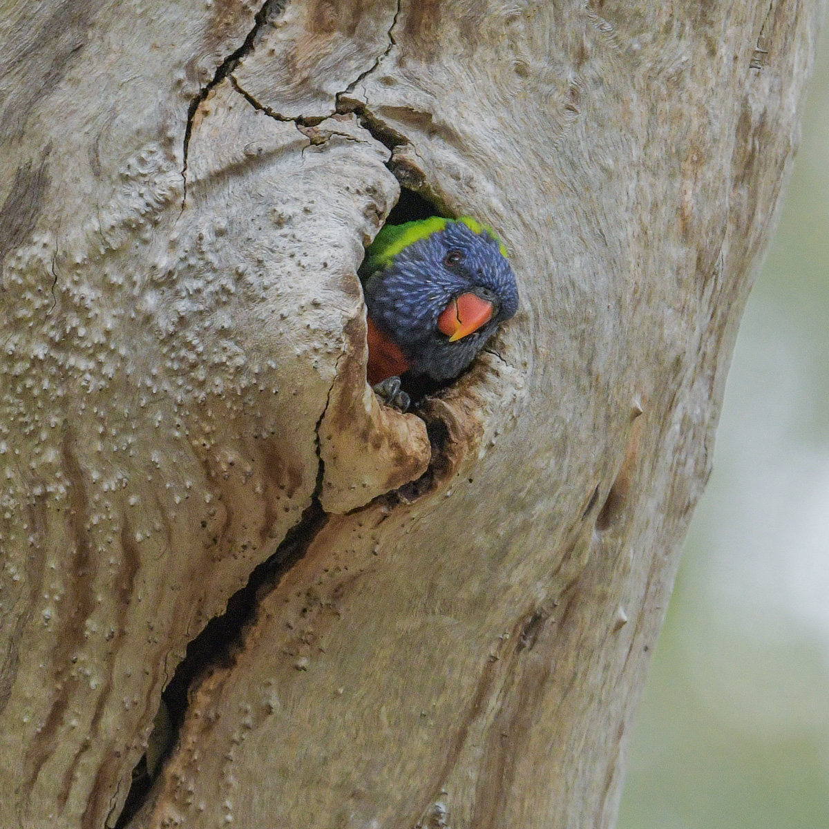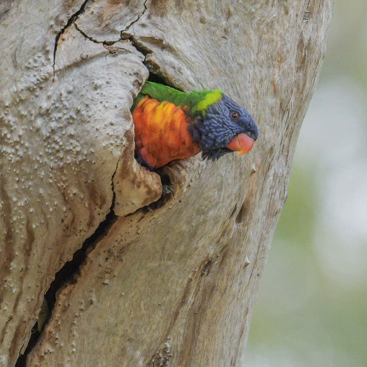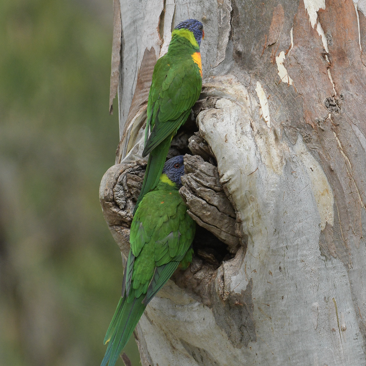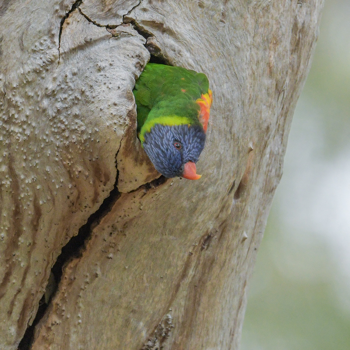 So there are quite a number of suitable nesting trees and the Rainbow Lorikeets have commandered the best and the second and third best sites.