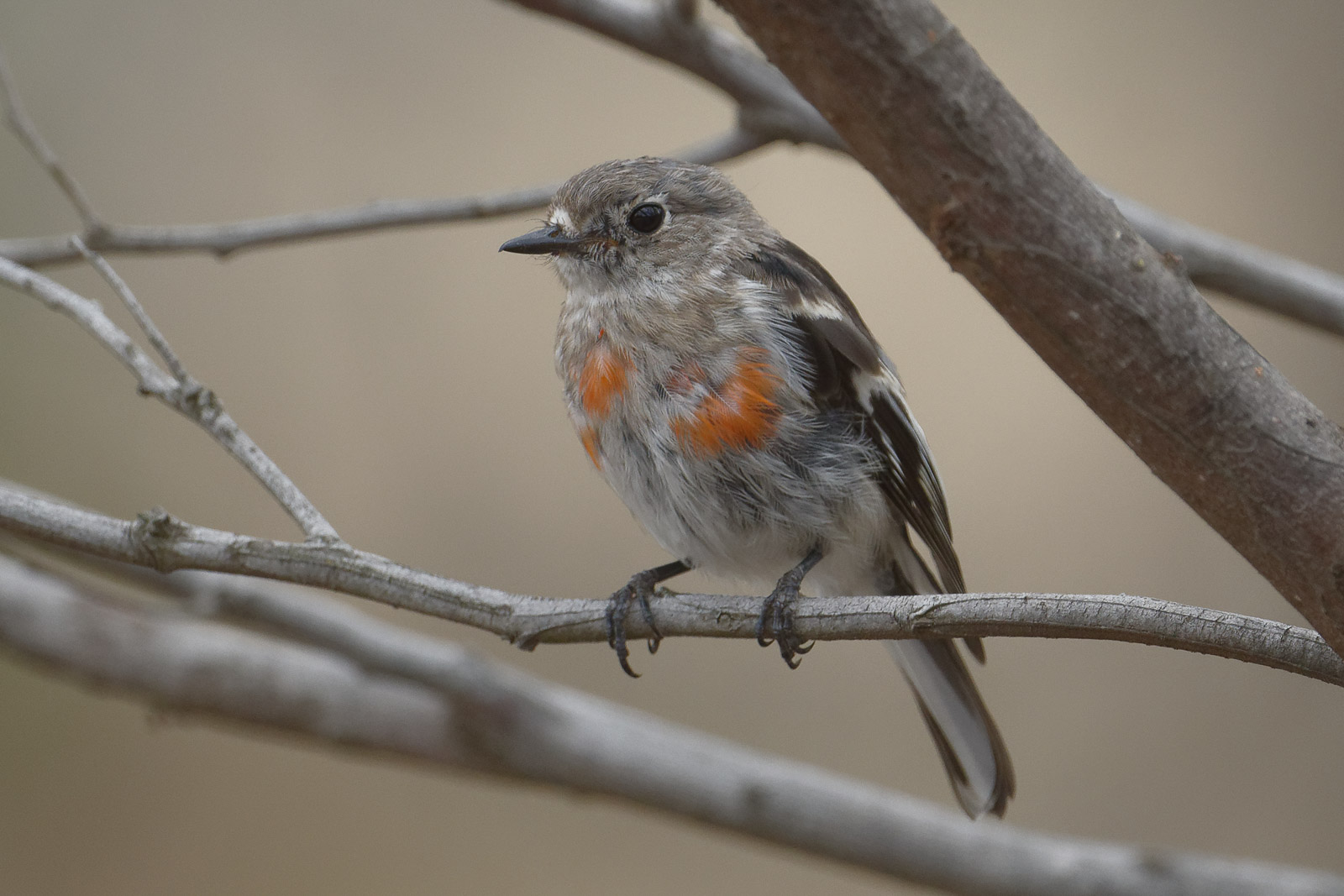 Weather closed over quickly. And after a big loop around Big Rock, we’d only seen a handful of birds. Then a small shape flew into a tree off the track. And I only had the short lens, so not much hope of a great image. And no way to get close as the Bone Seed was impenetrable. As an aside, Koalas, and there are a few in the park, cannot negotiate through the Bone Seed and are prevented from reaching some of the favoured trees.