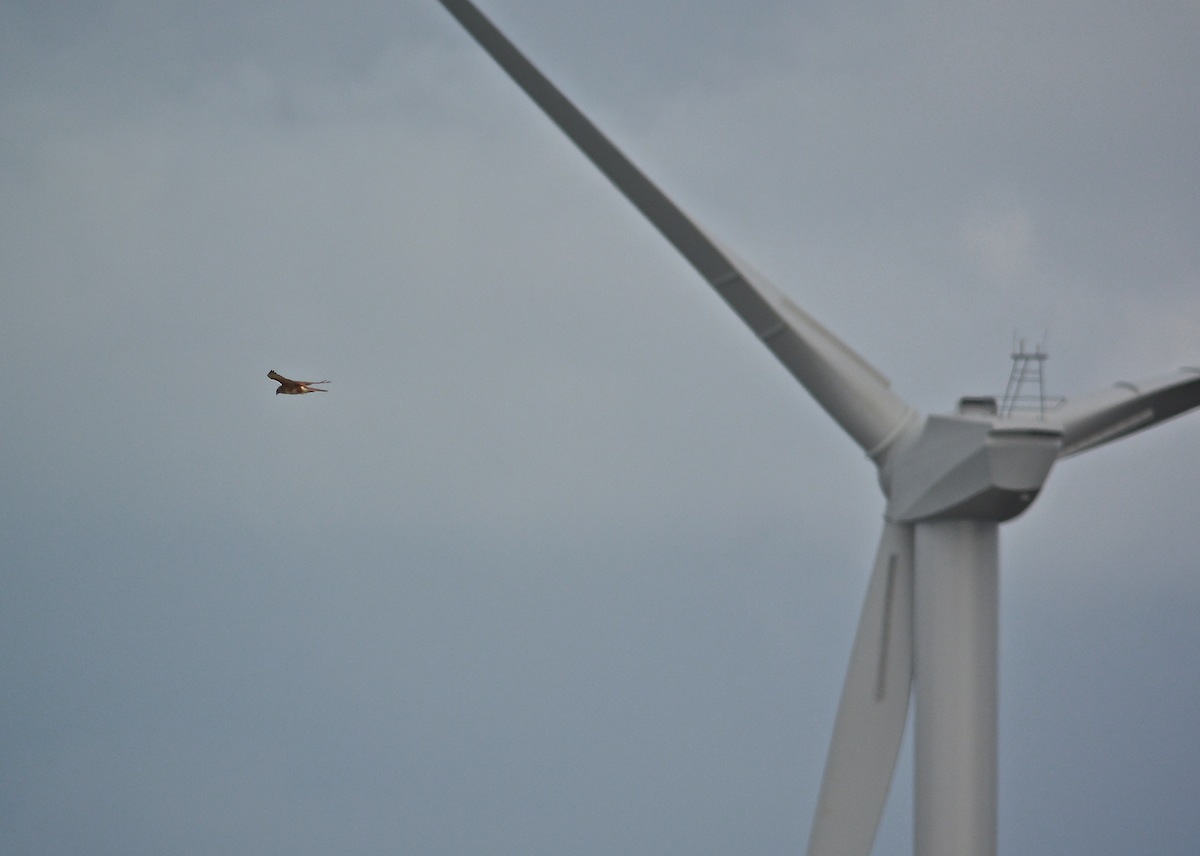 Brown Falcon and wind turbine.