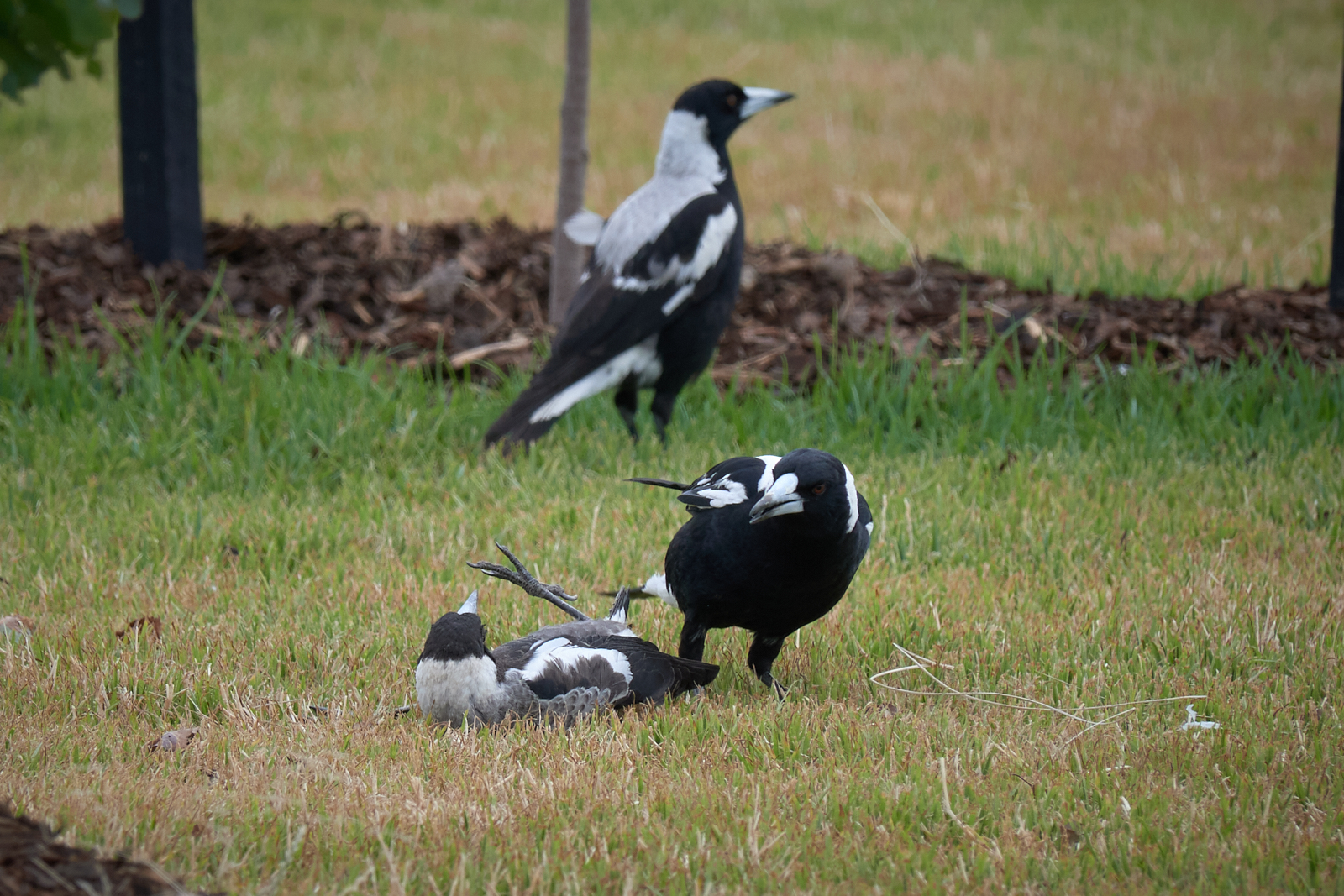 Either way. He had no intention of giving up the mouse and in the end ducked into a very thick tree where she decided not to follow. He didn’t come out again with the mouse, so no doubt polished it off at his leisure.