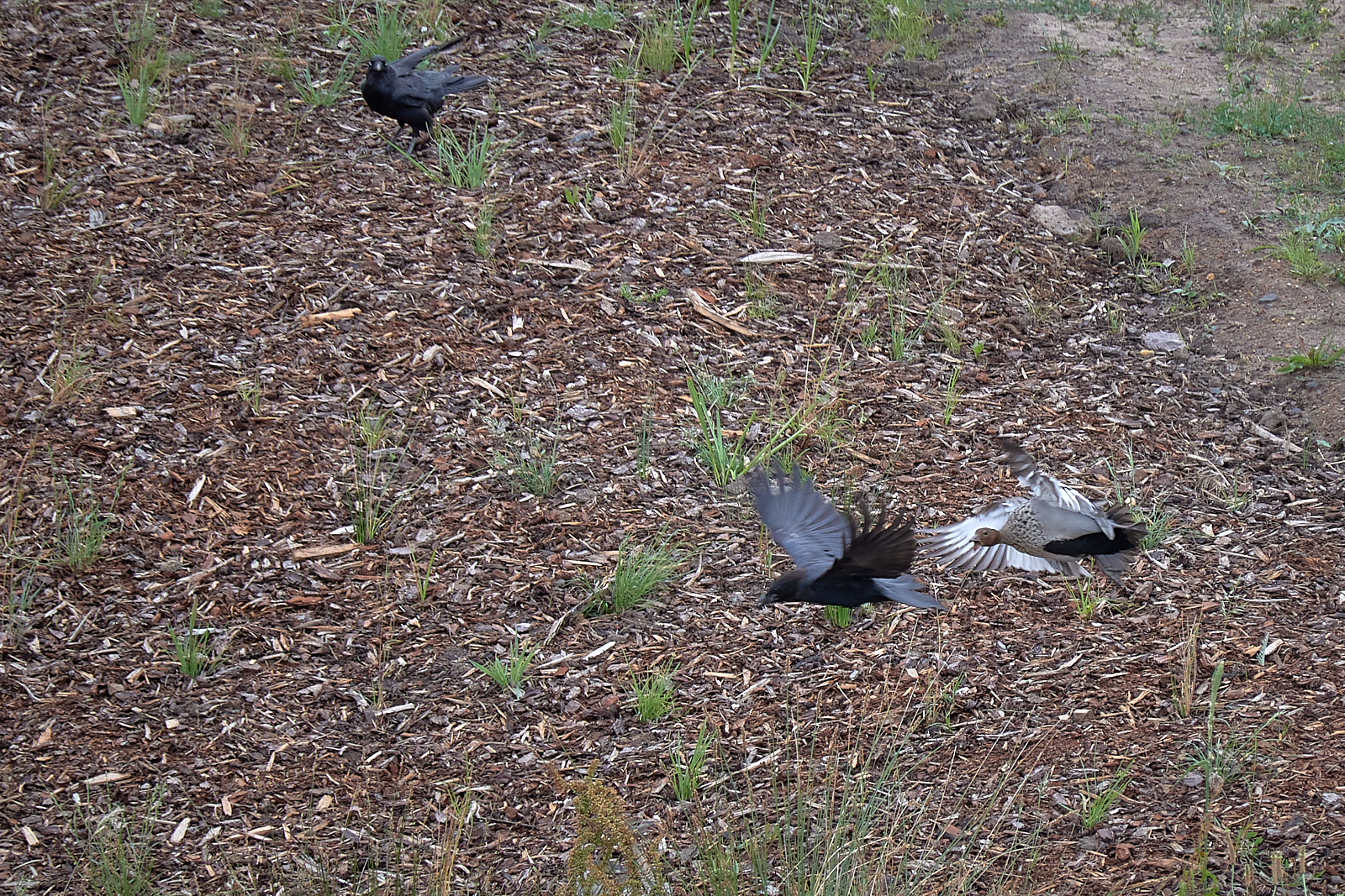 They both seem to hunt together, and there is occasionally a bit of an aerial battle with talons up, and lots of hoarse calling. But they both return to perch and seem to be at ease wth one another.