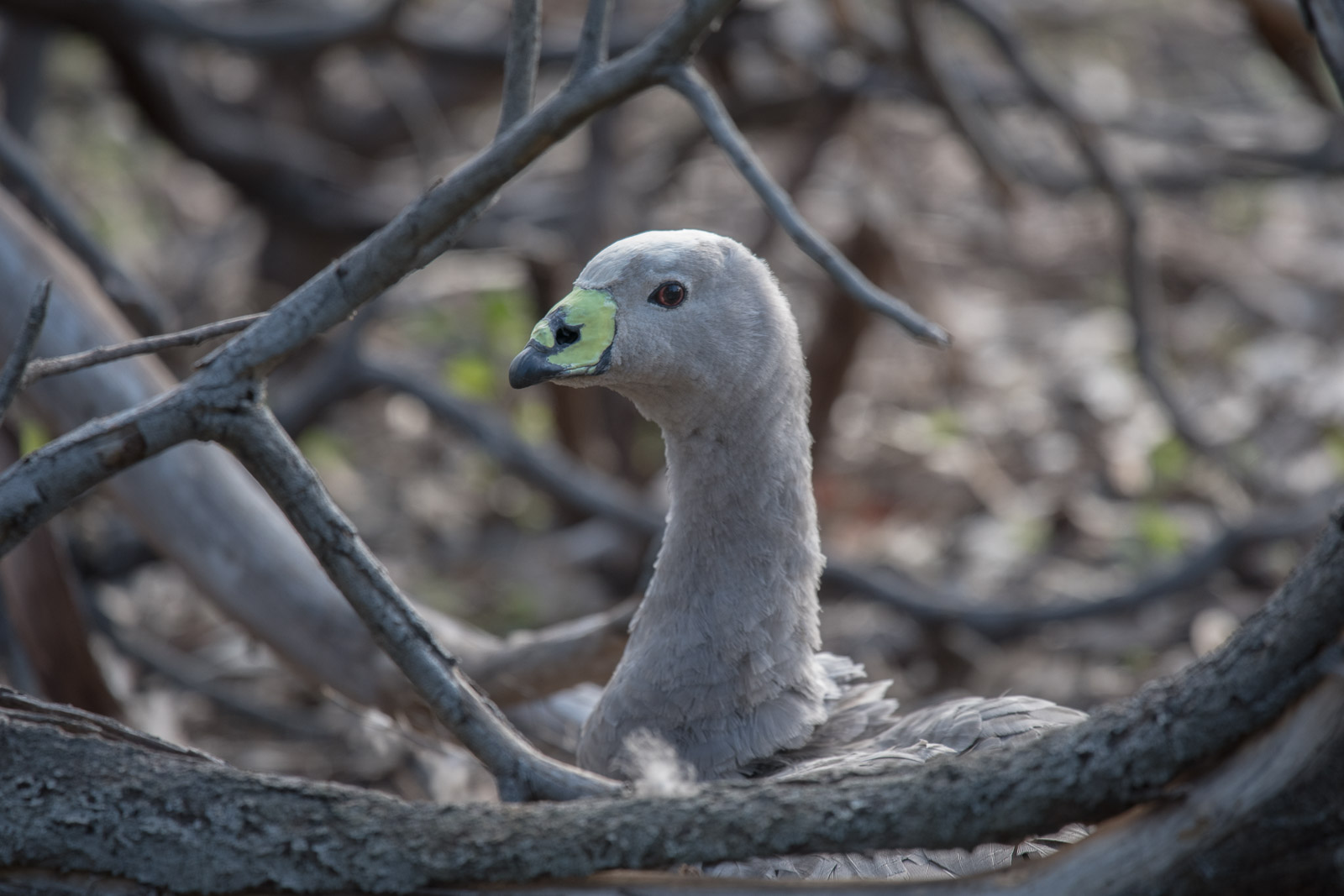 Of special interest to me is a pair of Cape Barren Geese. These big birds have settled in to make Serendip their home territory, and with ready provided food, can you blame them. It’s nesting time right now. One enterprising pair have made a nest site among some downed branches and scrub, not more than 5 metres from the main walking track. I spotted him first, and as he paced back and forth as people went by, I wondered, “Where is you mate”, and then I saw her. All tucked up in her ‘secure’ haven.