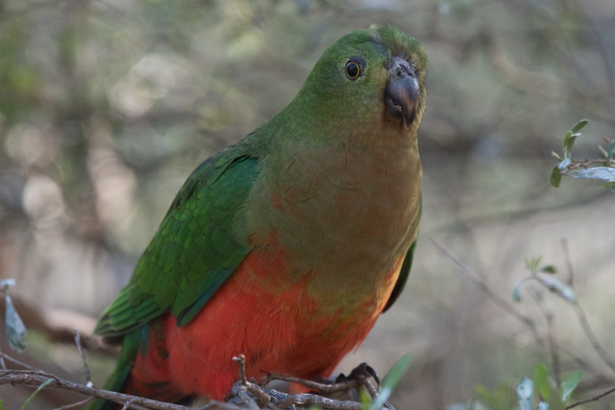 And while I was there admiring that ‘Cute little owl’ (ggrrrr- it’s a Tawny Frogmouth!!!!), a pair of King Parrot turned up for a looksee at why wasn’t I walking through, yelling, pointing, and waving a fone about. Thanks Mrs King, a lovely portrait session.